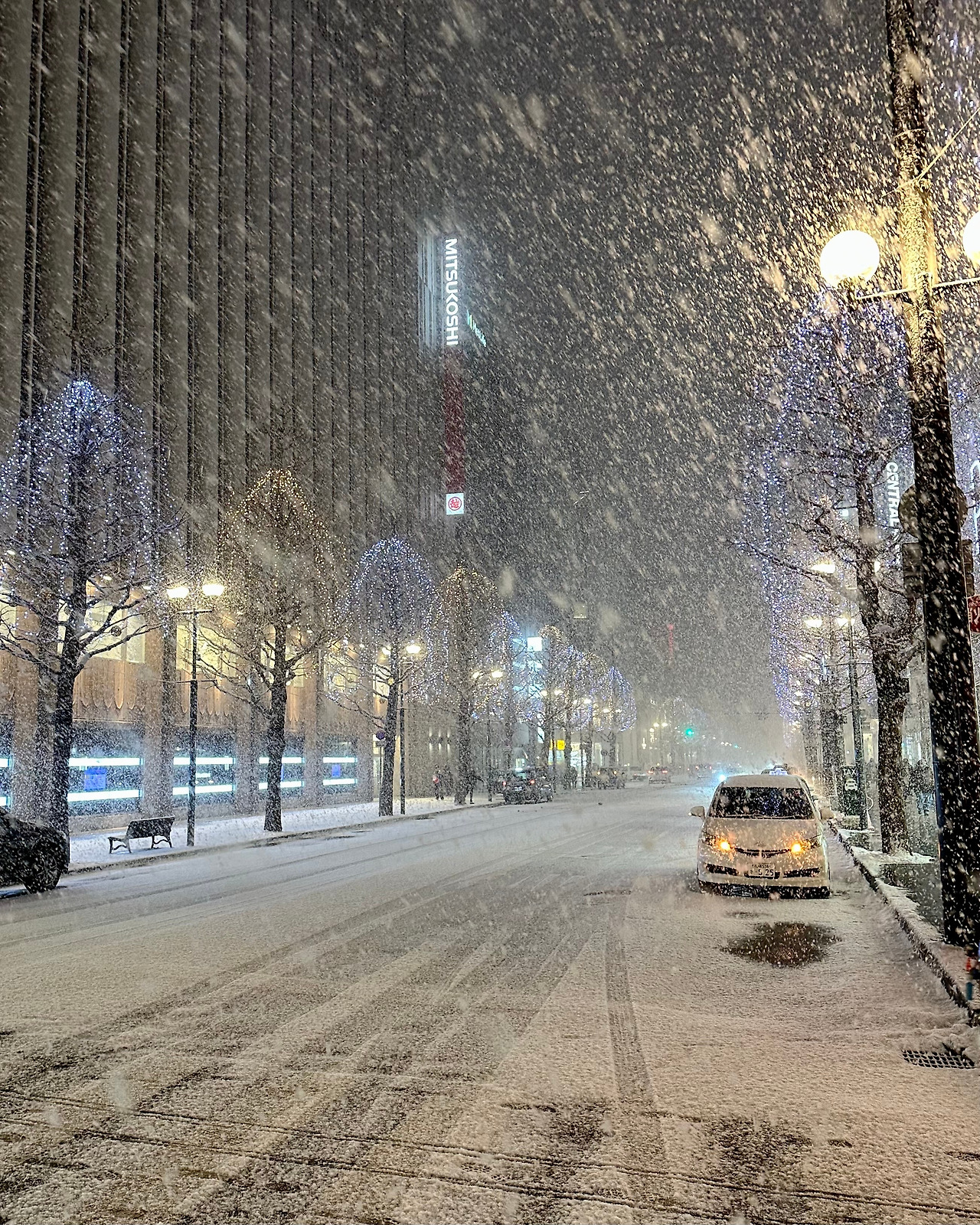 식사를 마치고 나오니 눈발은 더 세졌다. 잠시 지하도로 갈까도 생각해 봤지만 남은 여행 기간 동안 눈이 오지 않을 수도 있다고 생각하니 아직은 눈을 더 맞고 싶어졌다. 길을 걷다가 중간중간 멈춰서 모자와 패딩에 쌓인 눈을 털어야 했지만, 오래간만에 맞는 깨끗한 눈은 여전히 반가웠다.