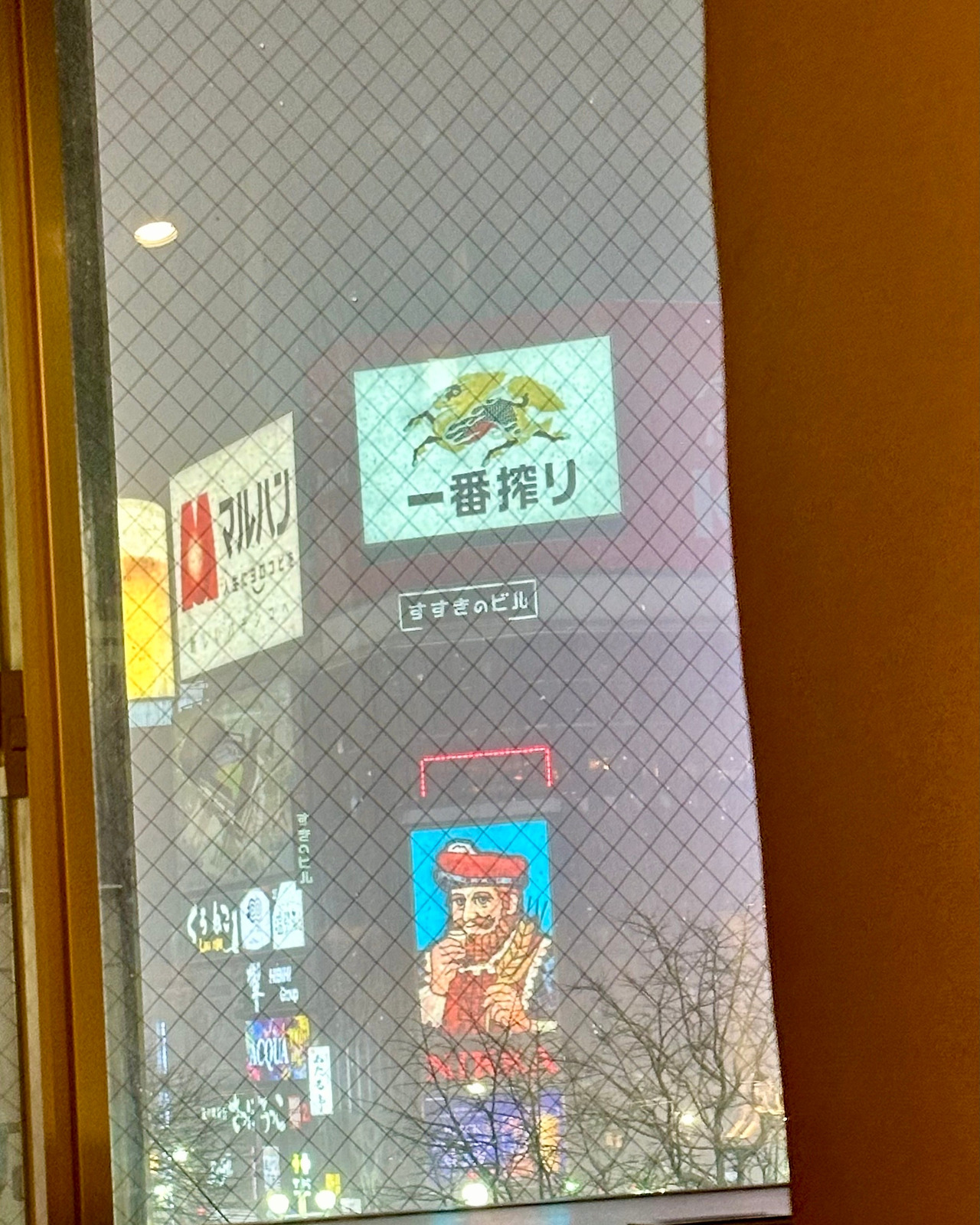 나의 경우 예약 경쟁이 심하지 않으면서 스스키노 시내에서 징기스칸을 먹을 수 있다는 점 때문에 <요조라노>를 선택했다. 핫페퍼에서 예약했는데, 구글맵을 통해 핫페퍼로 연결되며 회원가입 없이도 예약이 가능하다. 한국인에게 가장 유명한 징기스칸 식당인 <다루마>를 예약할 자신이 없다면 <요조라노>도 나쁘지 않다. 안쪽 자리를 안내받으면 창 밖으로 빼꼼 보이는 <니카상>을 볼 수 있다.