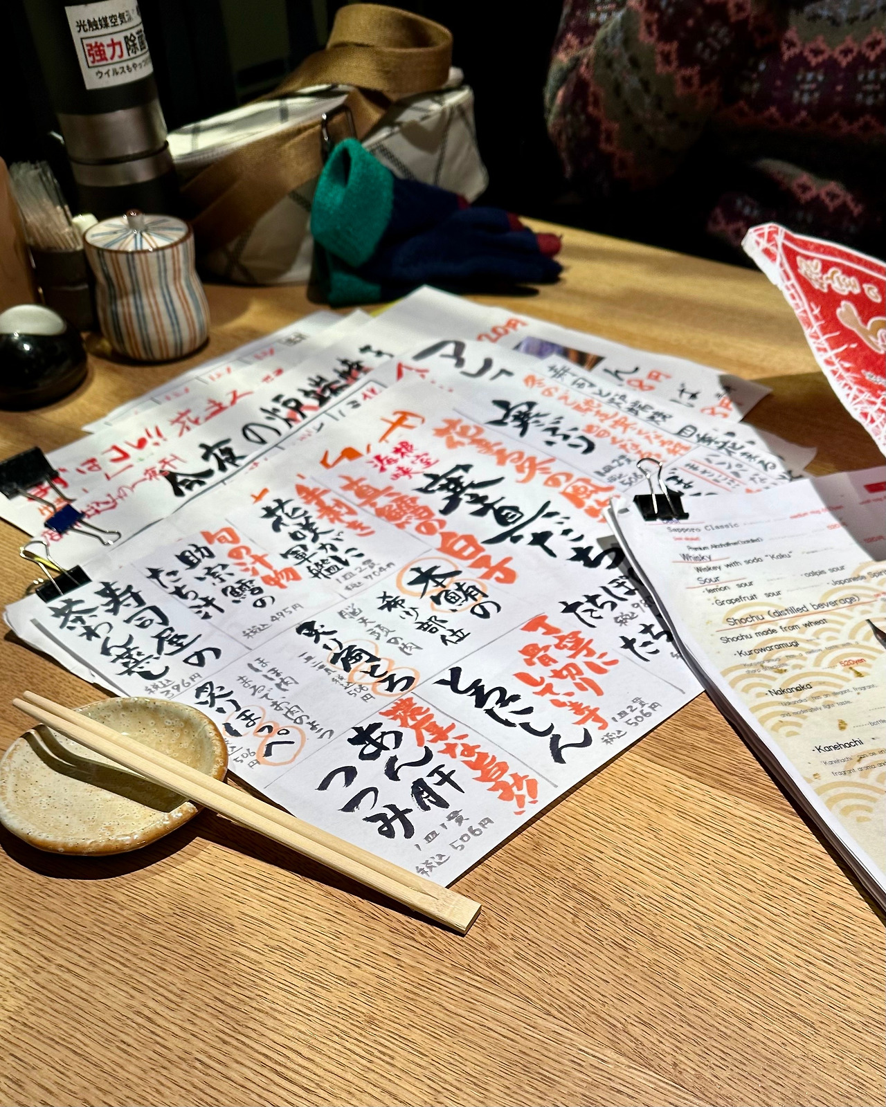 이곳의 초밥 주문은 기본적으로 피스 단위. <스시&로바타야키 시키하나마루>엔 현지인용 메뉴판과 관광객용 메뉴판 두 개가 존재한다. 관광객용 메뉴판에는 주문할 수 있는 모든 종류의 초밥이 맨 뒤에 표로 정리되어 있는데, 너무 빼곡해서 다 읽기가 어렵다. 뭘 주문할지 모르겠다면 세트로 시키는 것이 간편하다. 한국의 초밥 세트는 '10~12피스 초밥 + 미니 우동'이 보편적이지만, 이곳의 세트는 5~7피스의 초밥으로 구성되어 있다. 주점의 색깔이 강하고 음식 나오는 속도도 약간 느린 식당이기 때문에, 배를 채우기 위해서는 넉넉하게 주문해야 한다.