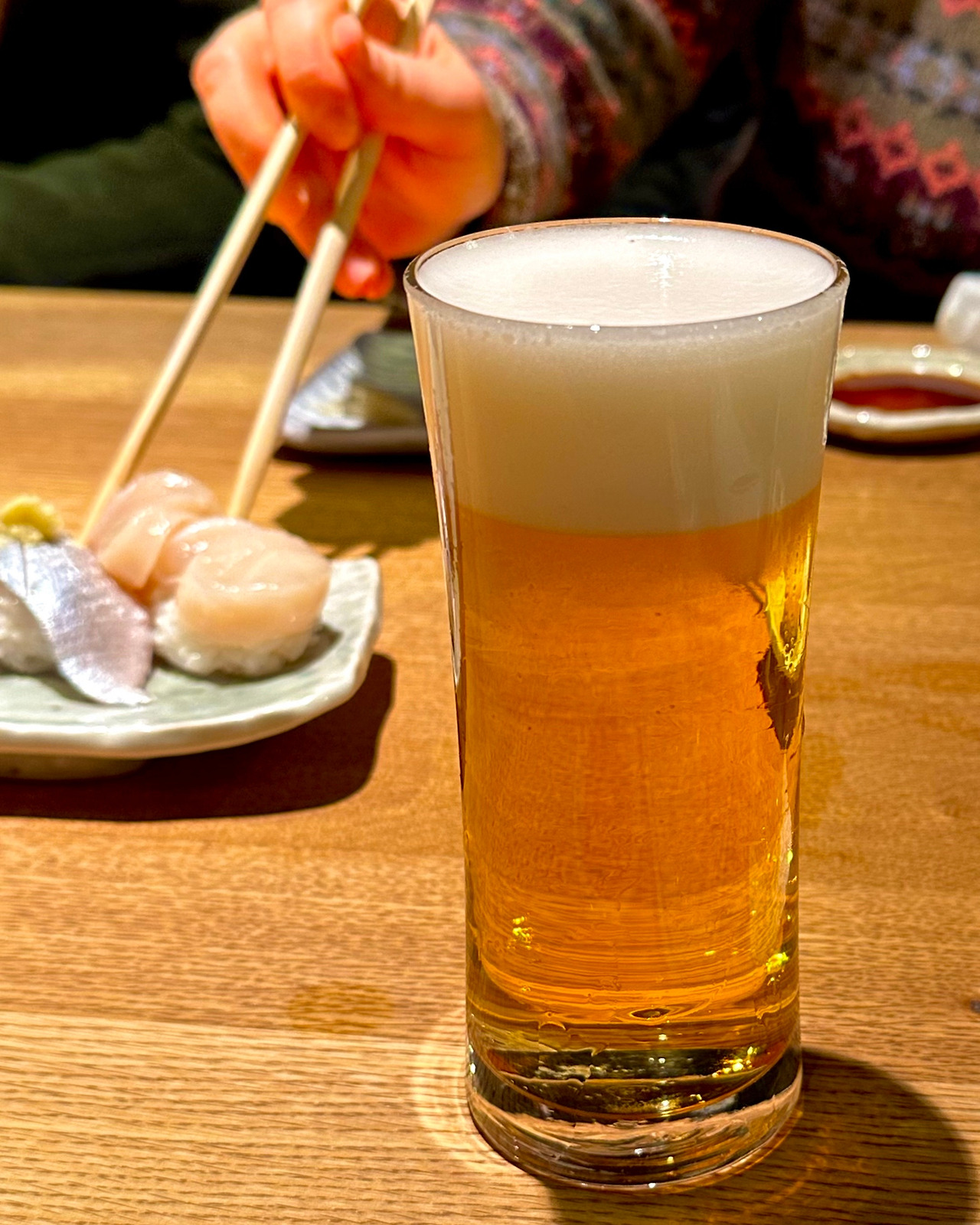 우리 부모님이 이 식당에서 불만족스러웠던 단 한 가지는 음식이 나오는 속도였다. 다른 손님들은 피스 단위로 주문을 하고 있는 데다가 손님도 많아서, 음식 나오는 속도가 살짝 느렸다. 우린 임연수어 구이, 초밥 세트 세 개, 주류를 주문했는데 모든 음식이 약 30분에 걸쳐 코스처럼 나왔다. 아침부터 이곳저곳 많이 돌아다닌 덕분에 배가 고프다면 살짝 마음이 급해질 정도의 속도였다. 다만 그다지 배가 고프지 않았던 나에겐 술 한 잔을 곁들이며 천천히 맛을 볼 수 있어서 오히려 좋았다.