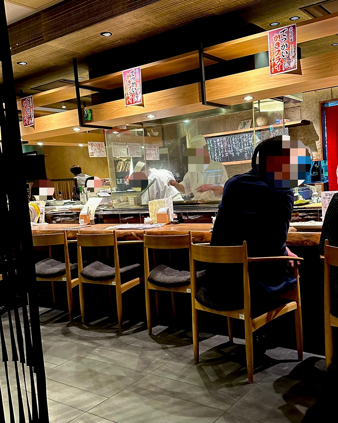 요리사가 눈앞에서 직접 요리한 음식을 먹는다는 것이 로바타야키의 장점 중 하나지만, 아쉽게도 이 날은 테이블석을 안내받았다.