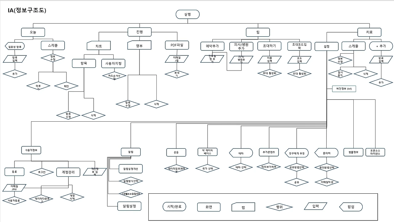 정보구조도를 통해 앱의 전체적인 흐름을 파악하고 가장 대표적인 Task들을 선정해 그 과정에서 사용자가 느낄 수 있는 불편함을 사용자 반응과 종합해 최종적으로 정리하기로 했다.