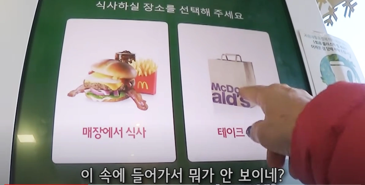 박막례 할머니께서 키오스크 첫 화면에서 겪은 문제는 두 가지다.