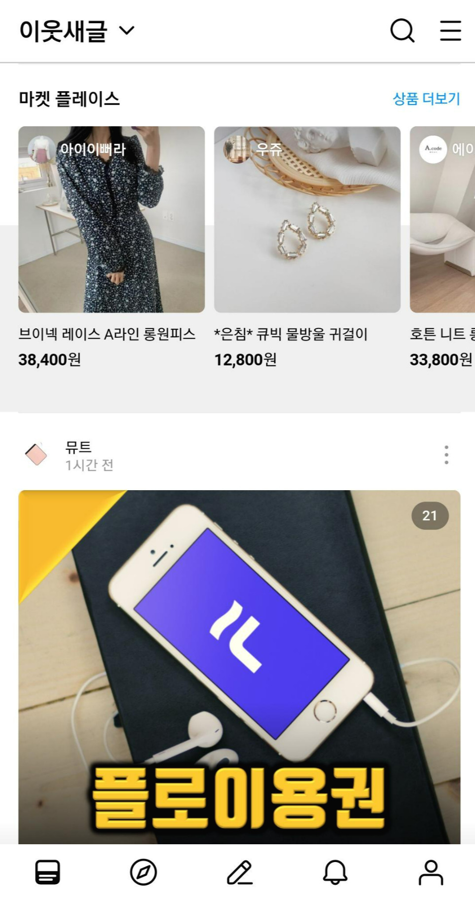 마켓에 대한 접근성을 높인다고 해서 사용자들이 거부감을 느끼는 것은 아니다. 과거에 페이스북과 인스타그램에 사람들이 실망한 이유는 쇼핑 기능이 생겨서가 아니라 콘텐츠를 공유하는 피드에 과도하게 많은 광고성 게시물이 도배되었기 때문이다. 블로그는 다른 SNS와 다르게 '목적성'이 더 뚜렷하다. 쇼핑 역시 사용자의 목적이 될 수 있다. 앱 안에 준비되어 있는 모든 서비스에 동일한 노력을 들여서 도달할 수 있을 것, 그것이 바로 사용자가 앱을 처음 사용할 때 기대하는 것이다. 꽁꽁 숨겨져 있는 서비스를 계속해서 사용하고 싶은 사용자는 아마 드물 것이다.