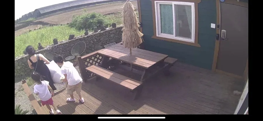 드디어 내가 가장 신경 쓰는 최종 마무리(머리카락, 쓰레기 점검) 작업에 들어갔고, 그동안 아이들은 마당에서 기다렸다. 문단속을 하고 다시 집에 작별인사를 했다.