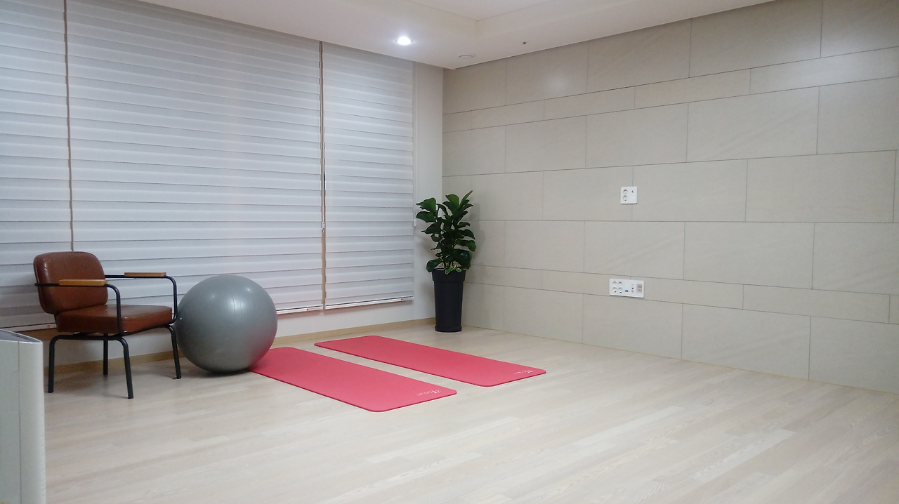 저 거실에서는 다양한 일들이 일어난다. 나는 저 의자에 앉아 발을 짐볼 위에 걸치고 책을 본다. 학교 다녀온 딸은 저 짐볼을 타고 앉아서 나랑 얘기를 나누기도 하고 거미 자세를 취하기도 한다. 요가 매트는 스트레칭할 때 이용하지만 가끔은 의자에 스마트폰을 걸쳐놓고 유튜브를 통해 홈트(home training :집에서 운동하는 것)를 할 때 유용하게 쓴다. 손님들이 오면 주방의 6인용 테이블을 거실 한가운데로 옮겨 놓고 식사를 하고, 기분 좋은 일이 있을 때는 간접조명만 켜둔 채로 딸과 남편은 춤을 춘다. 때론 요가매트를 무대 삼고 간접조명을 무대 조명으로 생각하여 딸의 플루트 연주회가 펼쳐지기도 한다. 딸 친구들이 파자마 파티하러 놀러 오면 거실에 이불을 펴주고 밤늦게까지 3~4명의 십 대 아이들이 조잘대며 잘도 논다. 가장 편한 건 청소할 때다. 요가매트를 접어 의자 위에 올려두고 청소기를 돌리면 세상 편하다.