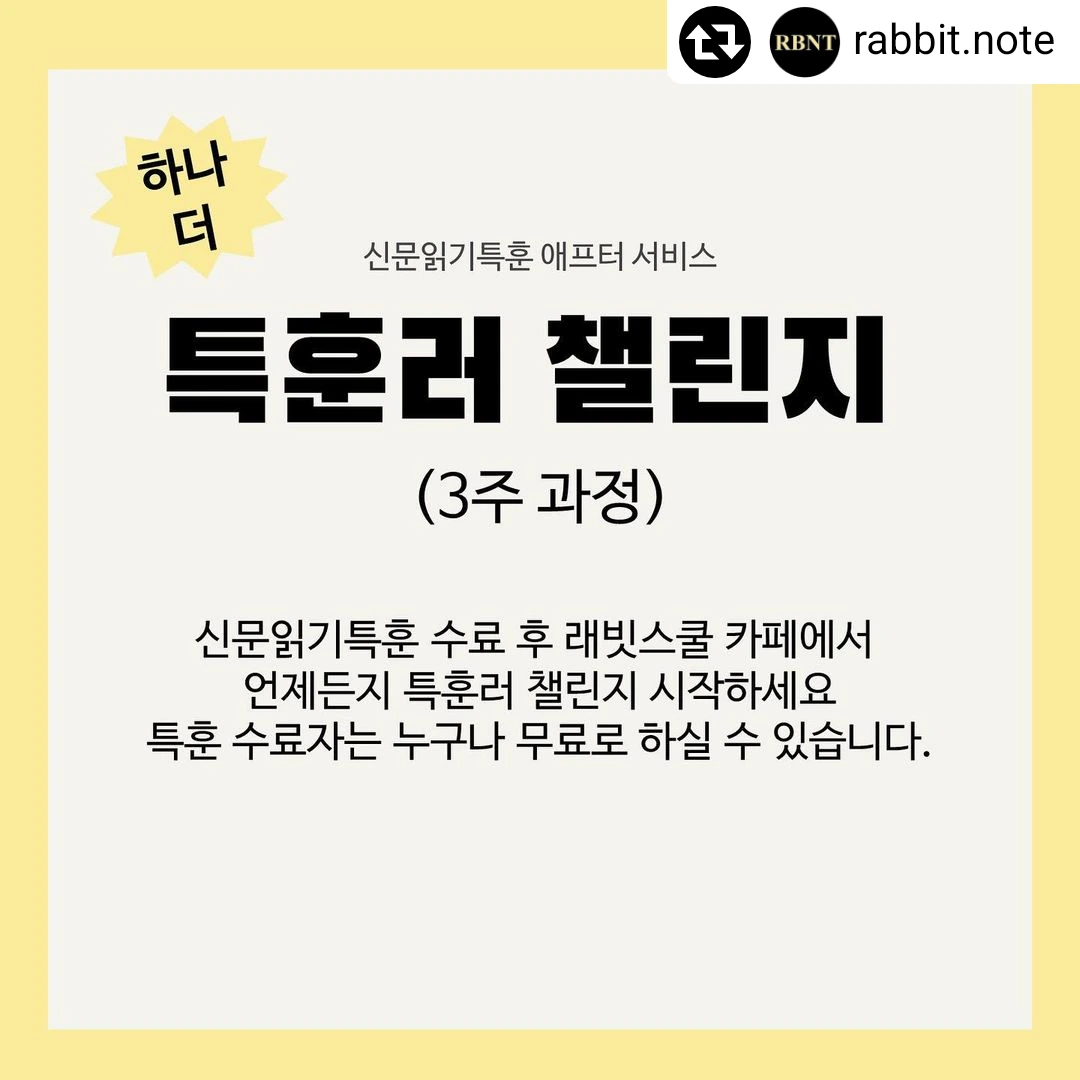 신문읽기특훈 만의 애프터 서비스! 래빗스쿨 카페의 <특훈러 챌린지>로 제대로 신문읽는 습관 들여보세요!