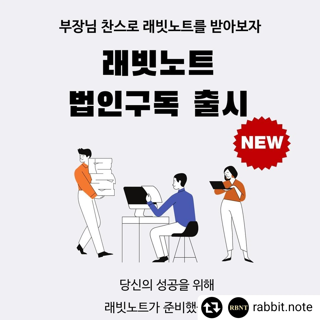 안녕하세요. 래빗노트 법인 구독 상담 신청해주셔서 감사합니다. 하단의 신청서를 작성해주시면, 구독 안내 PDF를 발송해드리겠습니다. 래빗노트 구독에 관심 가져 주셔서 감사하다는 말씀 다시