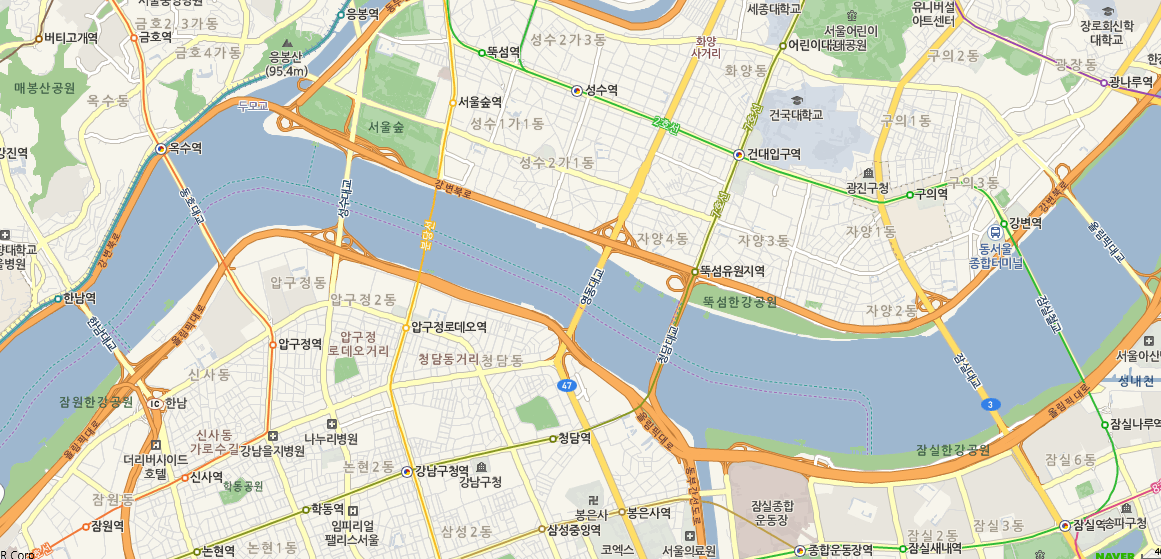 숙대 쪽에서 일을 끝내고 집으로 돌아가던 어느 날이었다. 내비게이션이 알려준 대로 후암동을 지나 한남고가차도를 타고 한남대교를 건너기 위해 다리 위로 진입했다. 다리 시작점에서 1km도 채 못돼 올림픽대로를 타야 했기 때문에 오른쪽 끝 차선으로 차를 붙이고는 아차 하고 후회가 밀려들었다. 올림픽대로가 막히는 중인데 강변북로에서 올라오는 차량까지 합류해 가장 오른쪽 차선은 그야말로 전혀 움직이지를 못하고 있는 게 아닌가. 심지어 저 앞쪽으로 끼어들기 차량까지 한 줄 더 늘어서 있다.