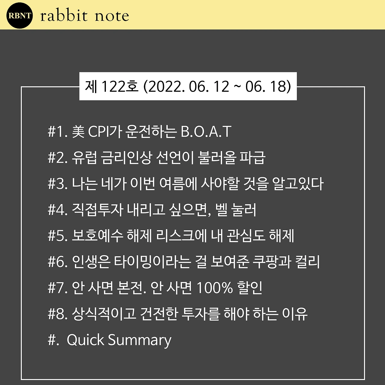 #1. 먼저 오늘밤 미국에서 발표할 CPI 이후 변동성을 주말내 체크해드릴게요. 특히 이번 CPI는 인플레이션이 정점을 지나 하락 국면에 진입했는지 아니면 더 오를 여력이 남았을지에 대한 판단을 세우는 데에 중요하기 때문에 저희가 잘 체크하여 인사이트 정리해드리겠습니다.
