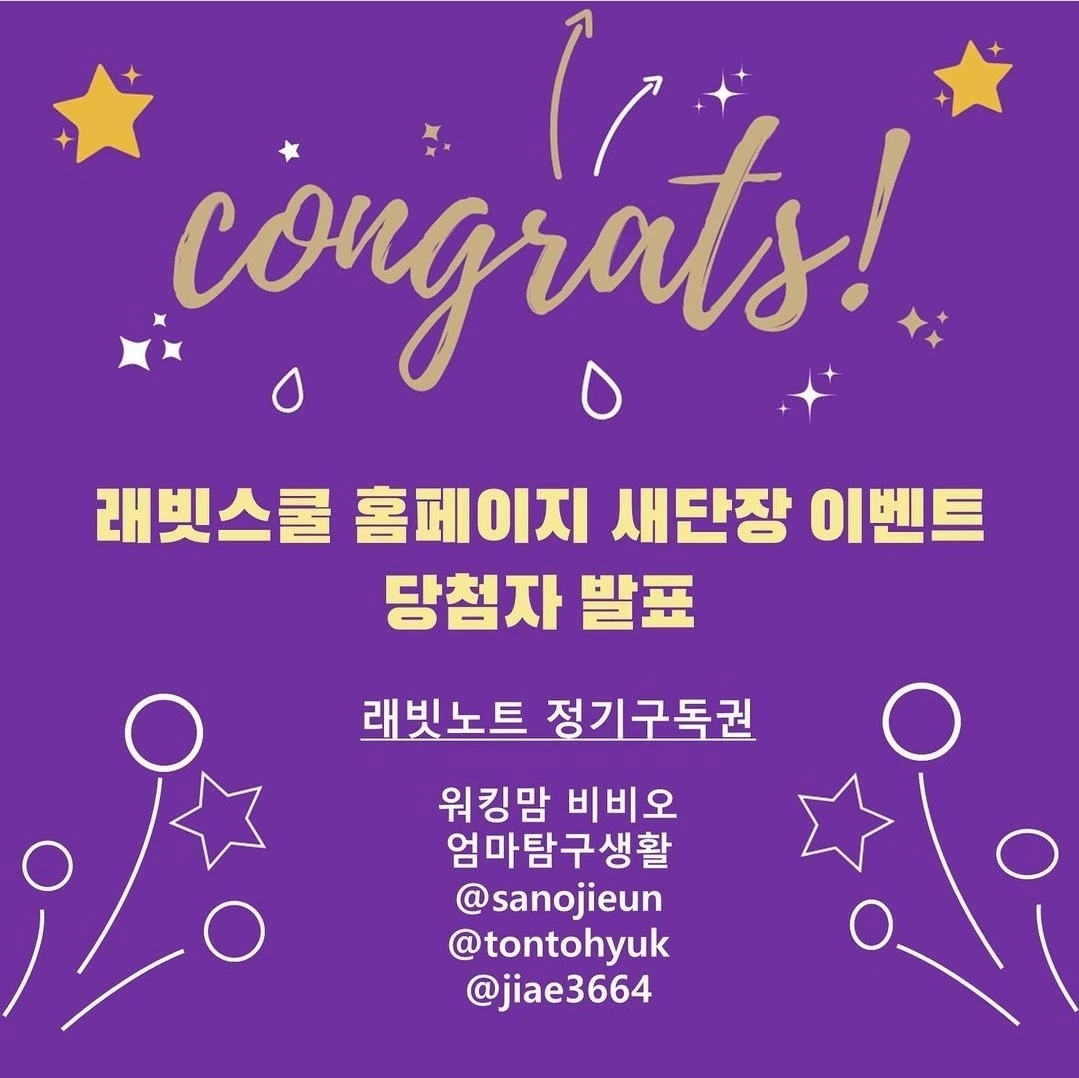 래빗스쿨 홈페이지 개편 이벤트 당첨자 발표 합니다!!