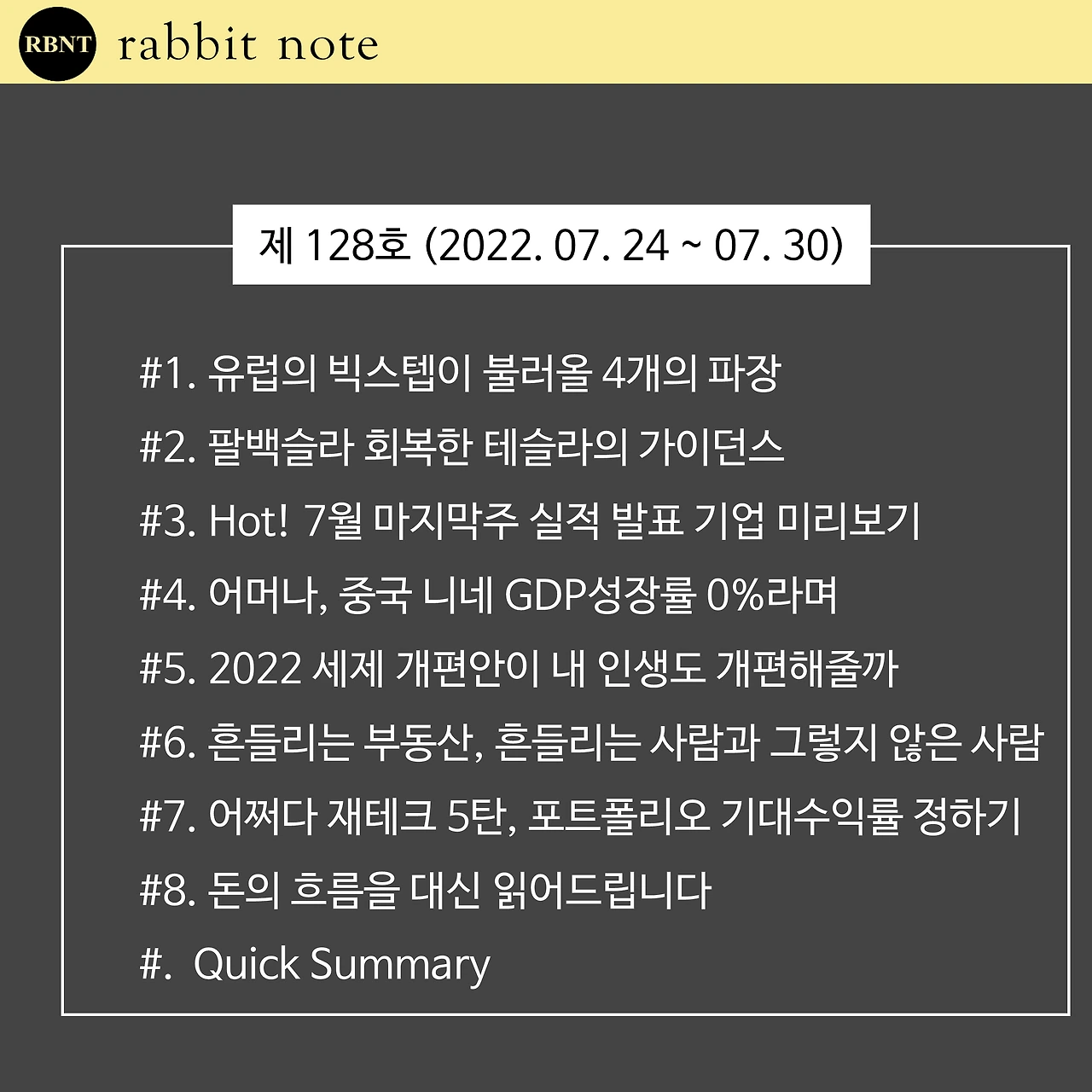 #3. 7월 마지막 주에도 많은 기업들의 실적 발표가 남아있습니다. 빅테크부터 글로벌 기업들까지 유명한 회사들의 실적이 우리를 두근두근하게 하고 있죠? 미리 꼭 봐둬야 맘 편히 휴가 다녀오실 거라 생각해서 미리보기를 하려 합니다. 꼭 챙겨 보셔야겠죠?