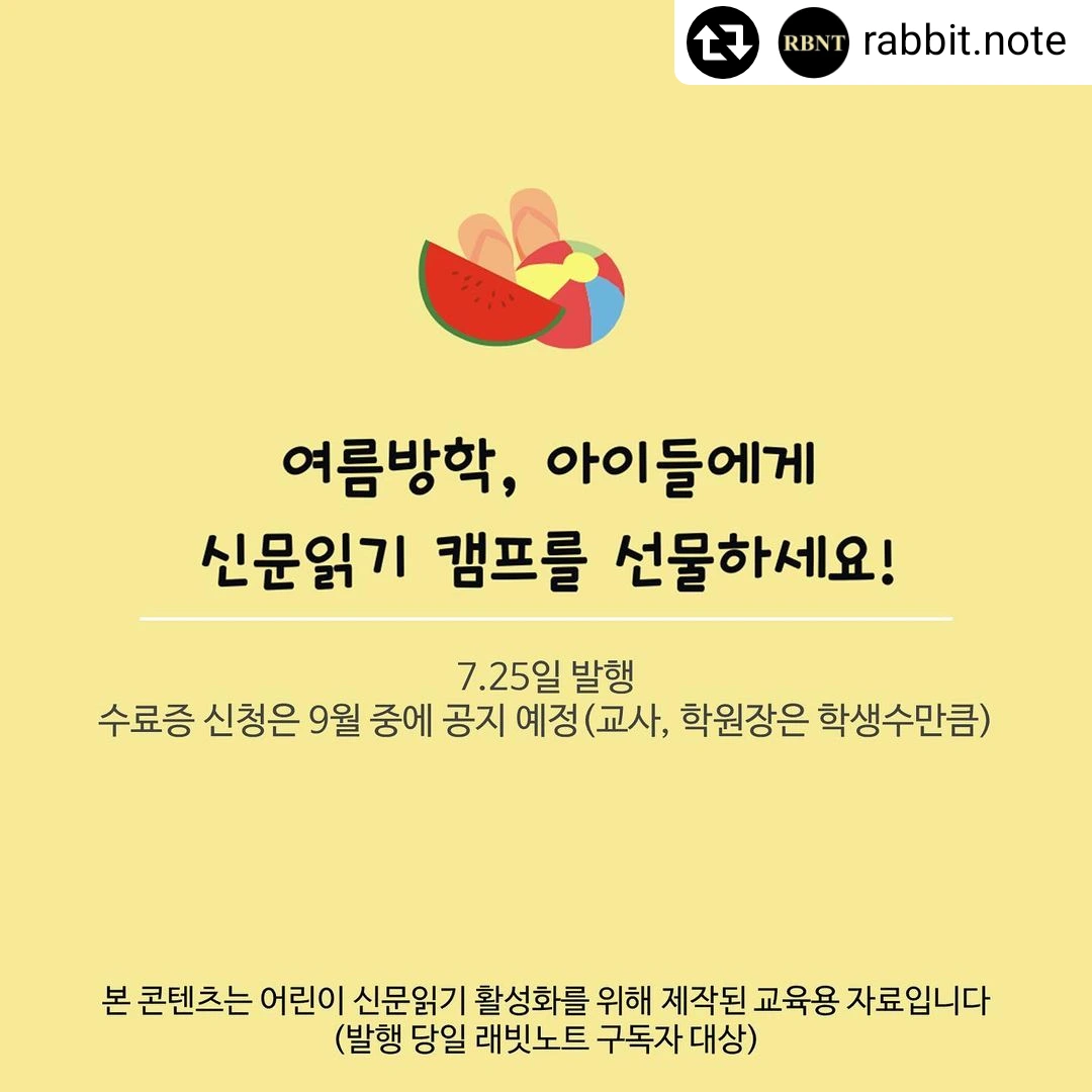 ♥ 본 콘텐츠는 래빗노트 구독자만을 위한 혜택으로 판매하지 않습니다. 신규 구독자분들도 여름신문캠프 혜택을 받아보실 수 있습니다.