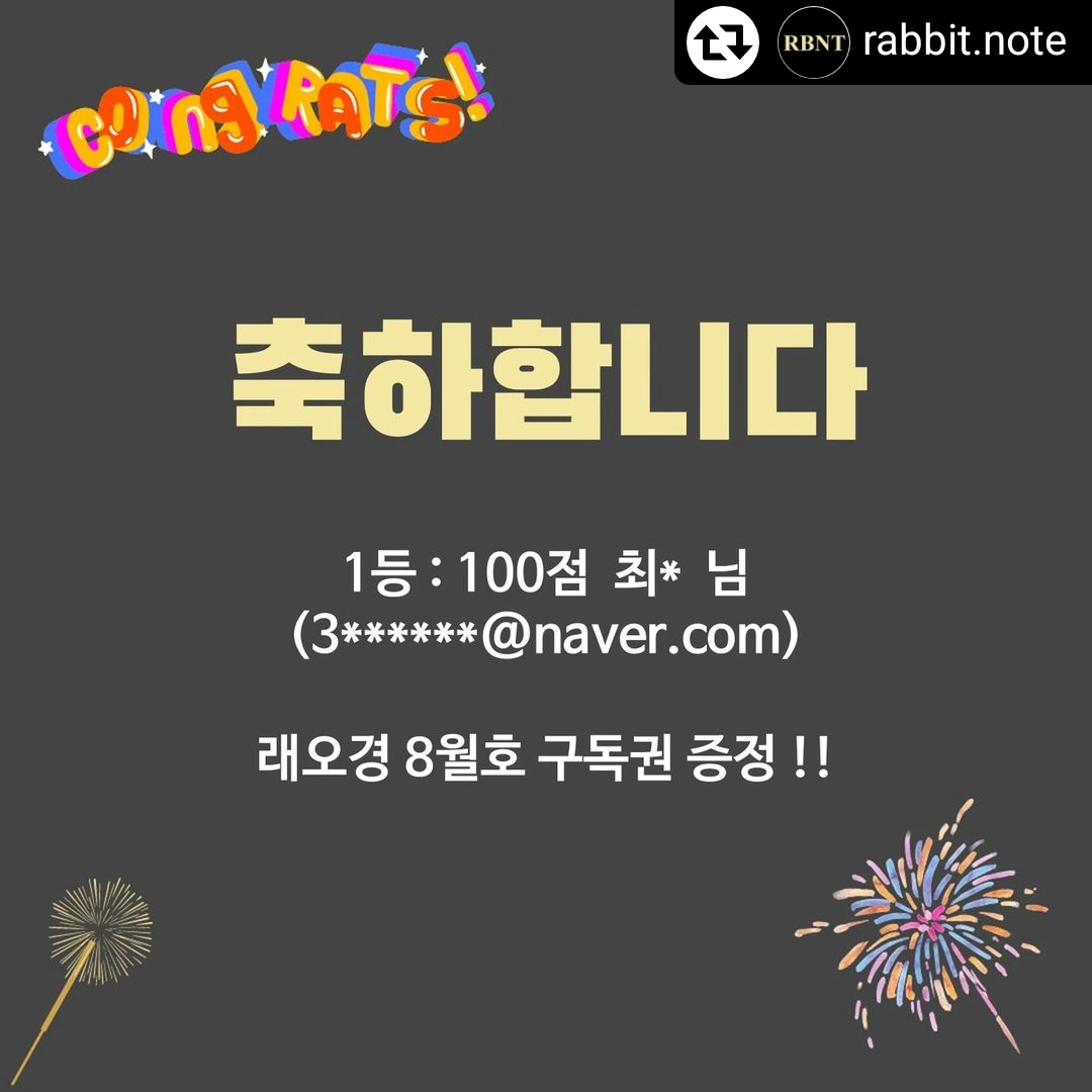 백점을 맞으신 최* 님께는 래오경 8월호를 보내드리겠습니다!!
