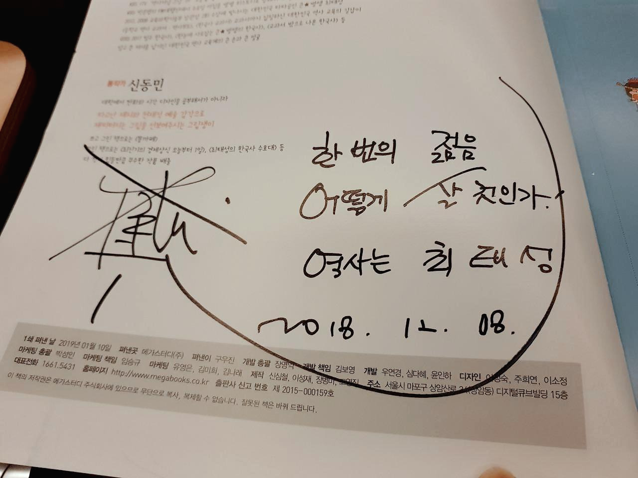 그리고 행운 한가지 더. 선생님 이름으로 삼행시를 써서 냈는데, 작가의 필력으로 열심히 썼더니 당첨! 선생님의 친필 사인이 들어간 책을 선물 받았고, 선생님과 사진을 찍을 수 있는 행운도 얻었다. 너무 떨려서.... 진짜 너무 떨려서 어떻게 사진을 찍었는지 기억이 안 난다. 선생님이랑 동시대를 살아가고 있다는 것만 해도 감사한데, 정말 팬의 입장에서 무한한 영광이었다.