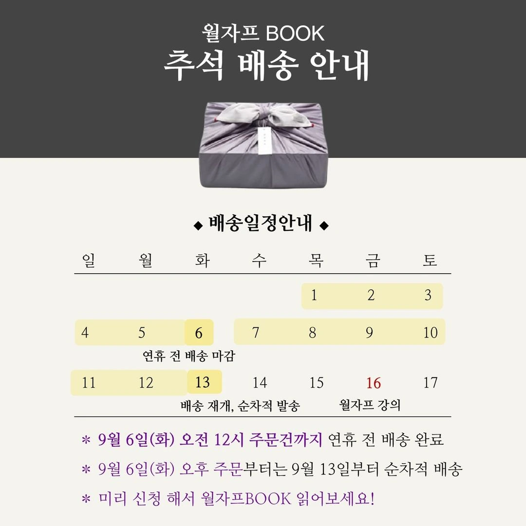 월자프북 추석 전 배송 안내