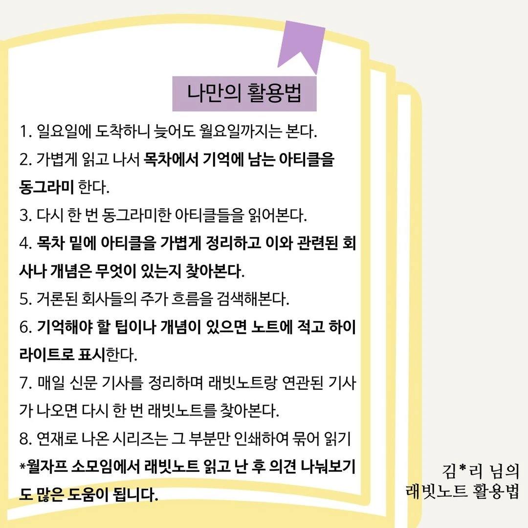이번주 134호 래빗노트부터다른분들의 활용법도 응용하면서 읽어보시면 좋을 듯 합니다!