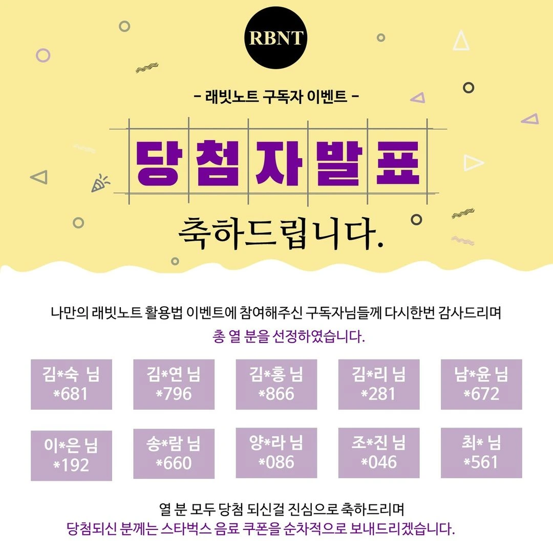 래빗노트 구독자 이벤트 <나만의 래빗노트 활용법> 당첨자 발표합니다.