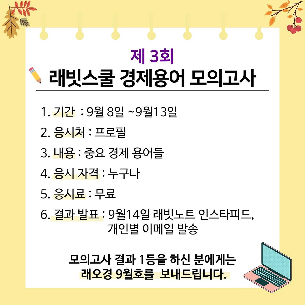 래빗스쿨 제 3회 경제용어 모의고사 경제 용어만 제대로 알아도 경제 기사 읽기가 훨 쉬워지죠? 여러분은 경제 용어 얼마나 제대로 알고 계시나요? 그래서 래빗스쿨에서 경제용어 모의고사를 준비했습니다. 최근 기사에 자주 나오