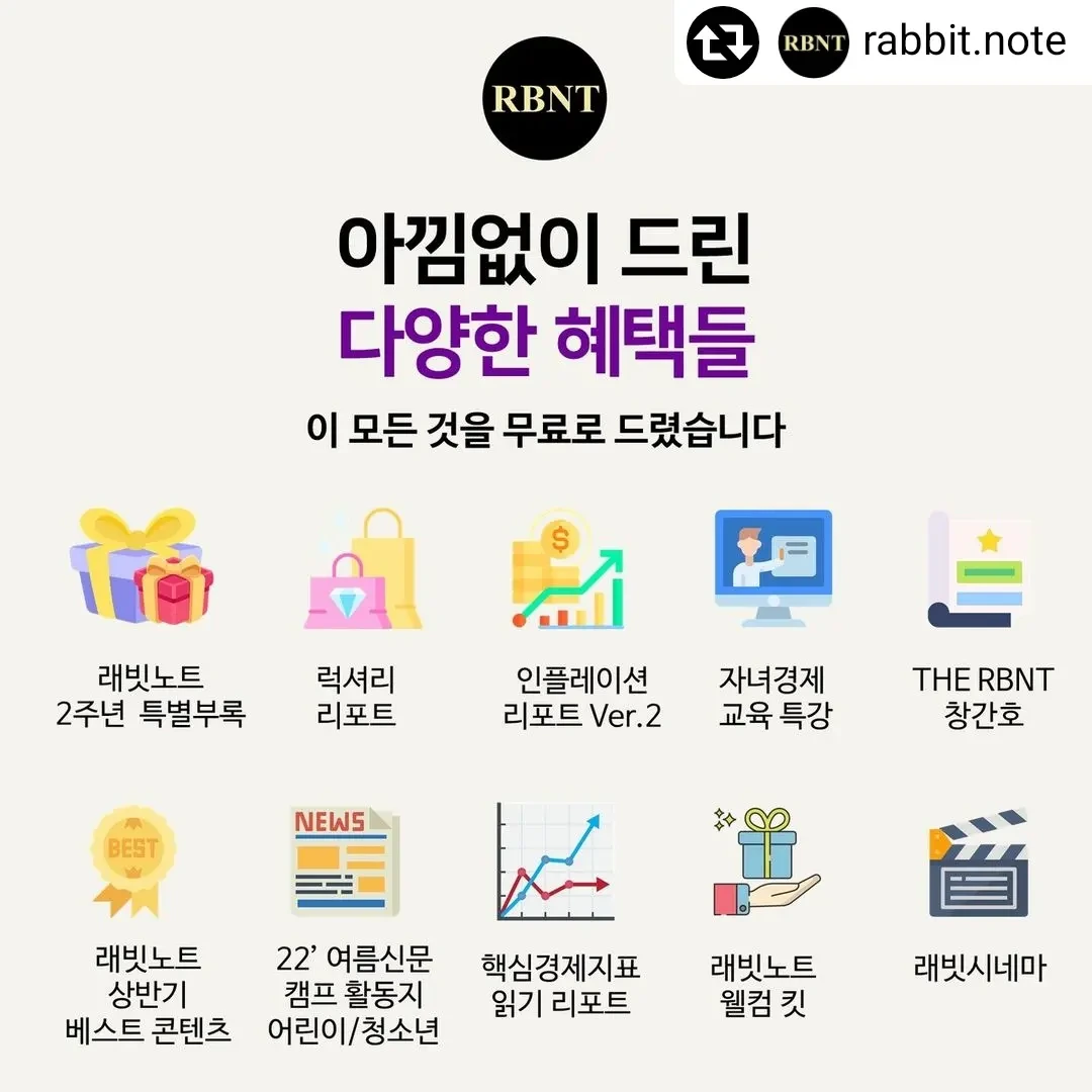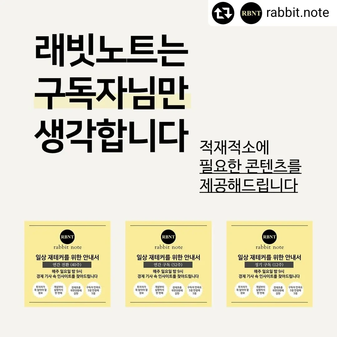 가끔 구독자님들이 땅파서 장사하는거냐고 이렇게 많은 혜택을 줘도 괜찮냐고 걱정해주시는 메일도 주시거든요. 네 괜찮습니다. 래빗노트 덕분에 구독자님들이 더 많이 알게 되고, 좀 더 부자가 되신다면 저흰 괜찮습니다!