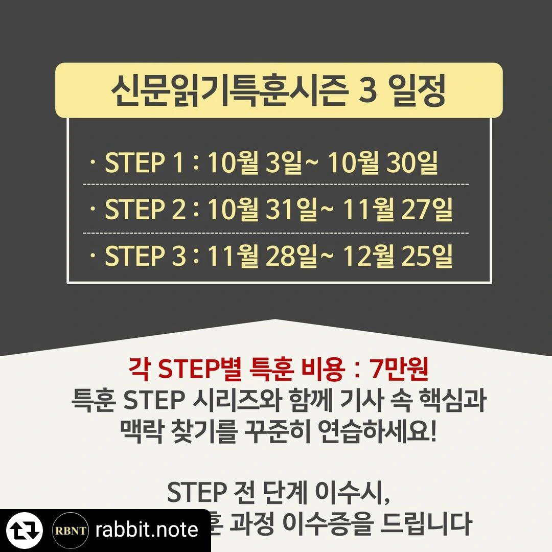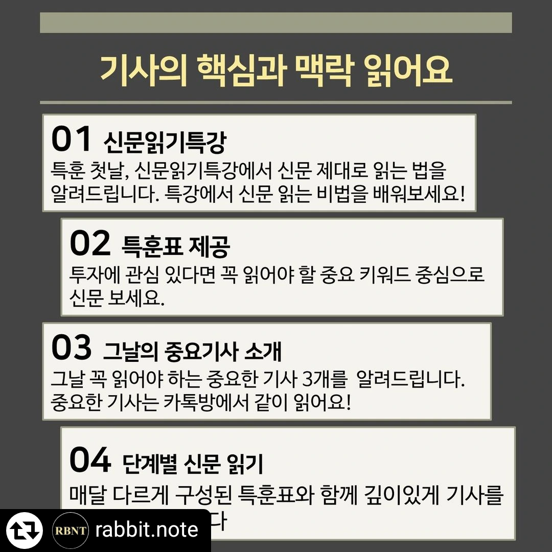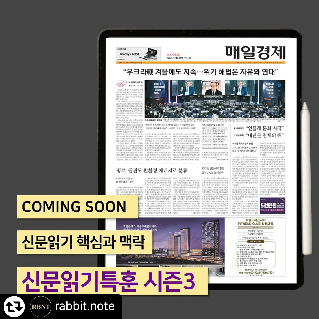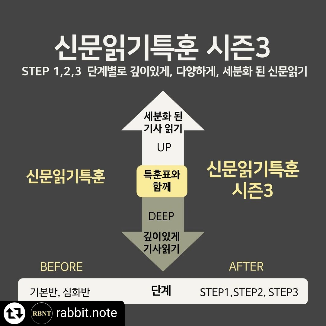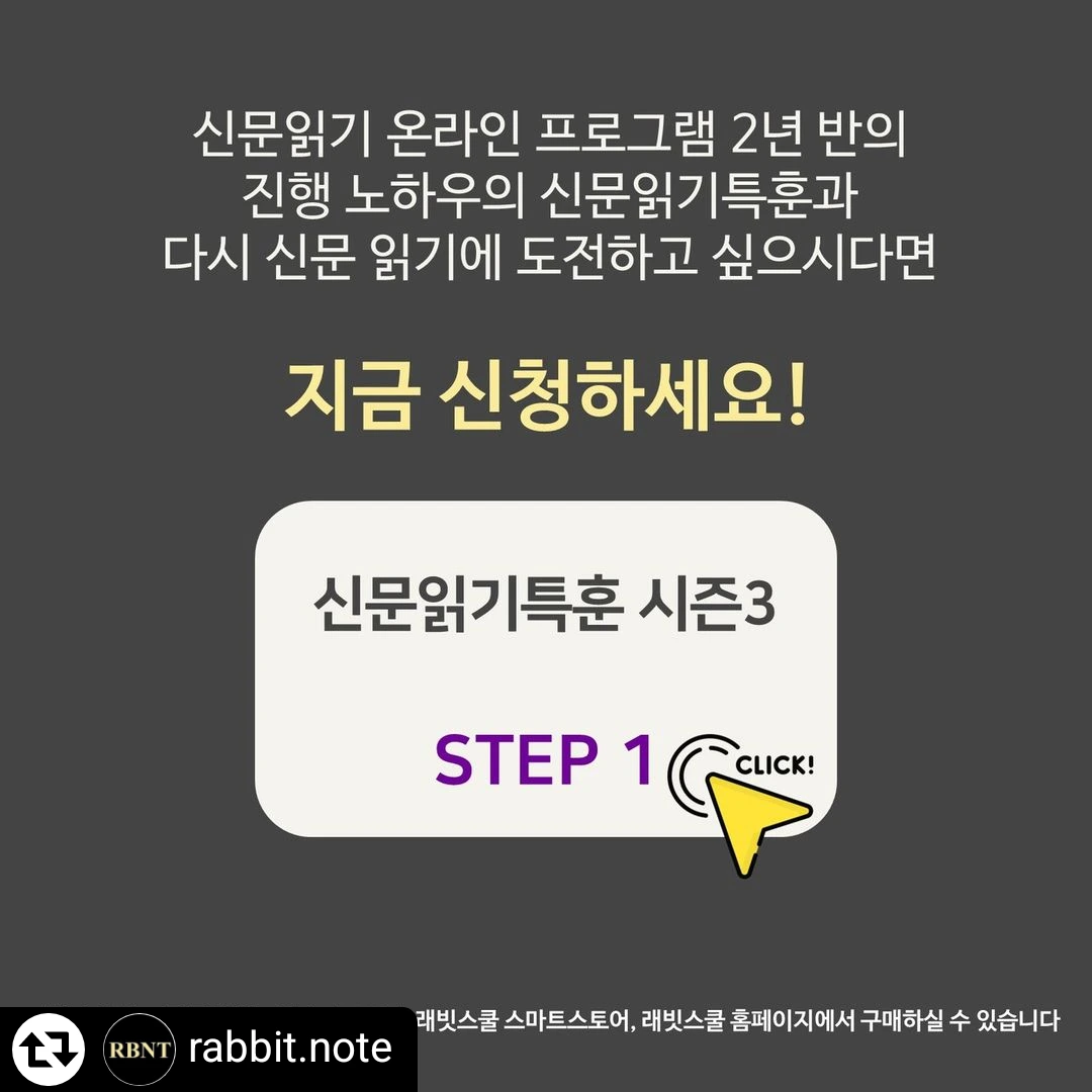 ■ 래빗스쿨 신문읽기특훈은 전통을 바탕으로 새롭게 시대에 맞춰 바꿔 나갑니다. 그와 동시에 다르다는 것, 새롭다는 것을 확실히 특훈 시즌3에서 보여드리겠습니다.