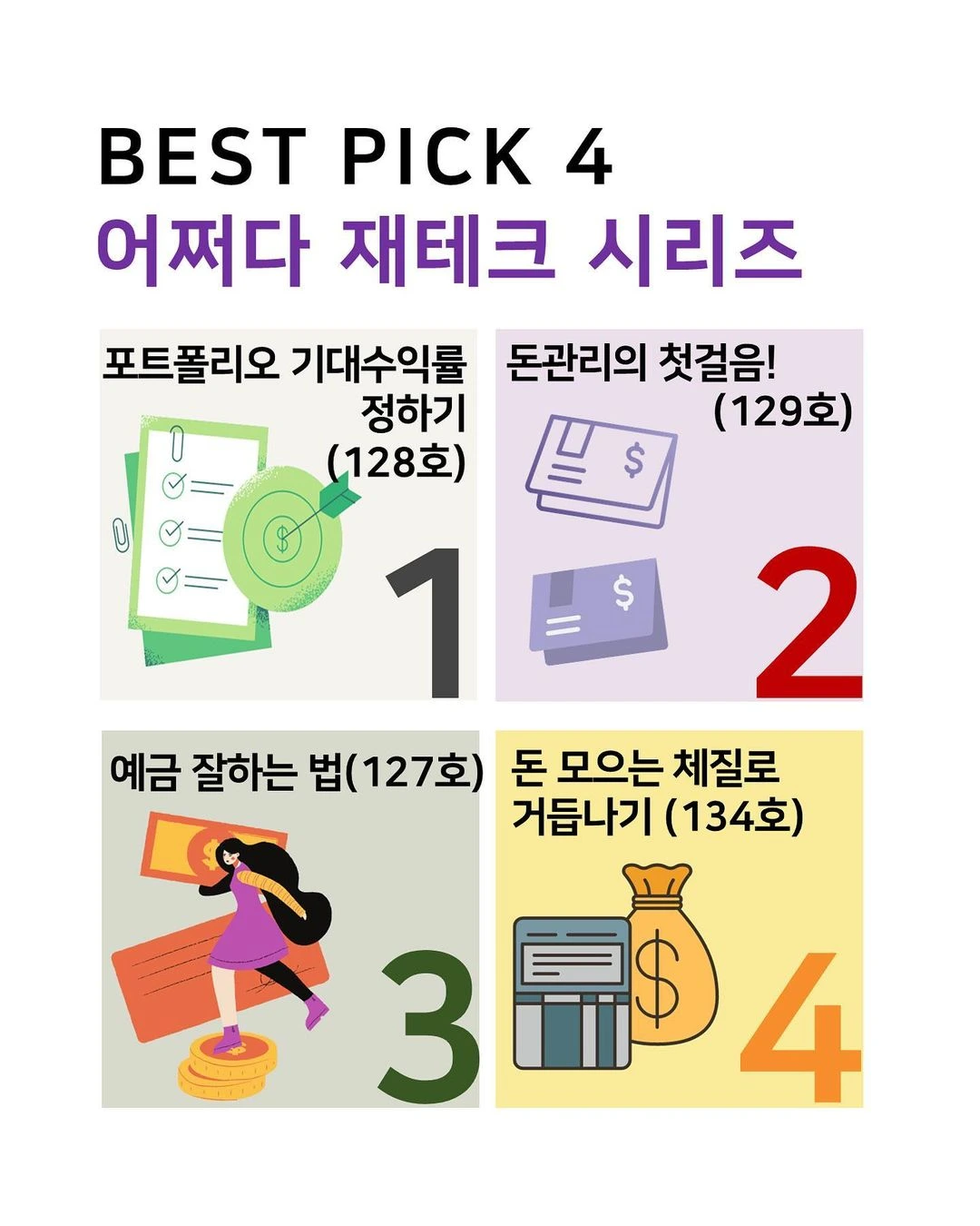 지금까지 16개 아티클로 여러분께 다양한 재테크를 소개해드렸는데 그중에서 인기가 가장 좋았던 베스트 4를 뽑았습니다. 어재 다시 복습하고 싶으신 분들은 베스트픽 4 중심으로 다시 한번 보시면 좋으실거에요! 그리고 래빗노트 신규로 보시는 분들도 궁금하시죠? 그래서 저희가 신규 구독자분들에게도 베스트픽4 pdf파일을 보내드립니다.