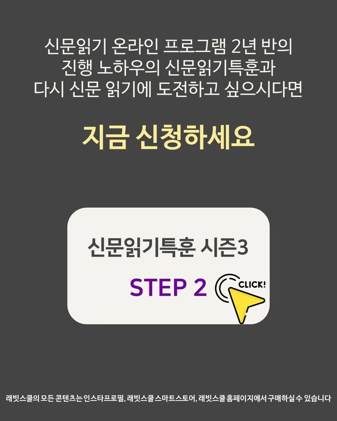 신문읽기특훈 시즌3 STEP2와 함께 하고 싶으신 분들은 지금 프로필에서 신청해주세요!!