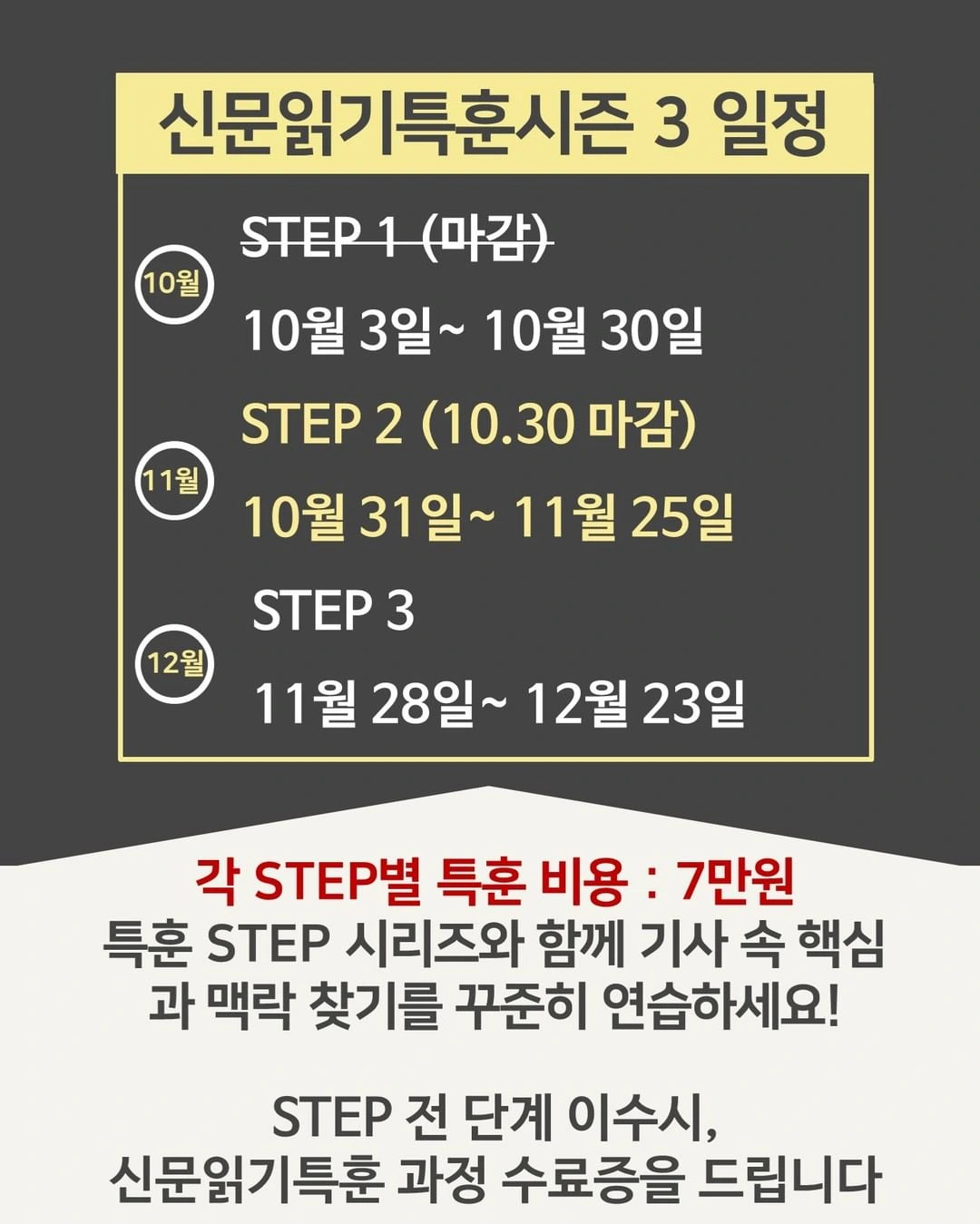 신문읽기특훈 26기 step2 모집(10/30마감)