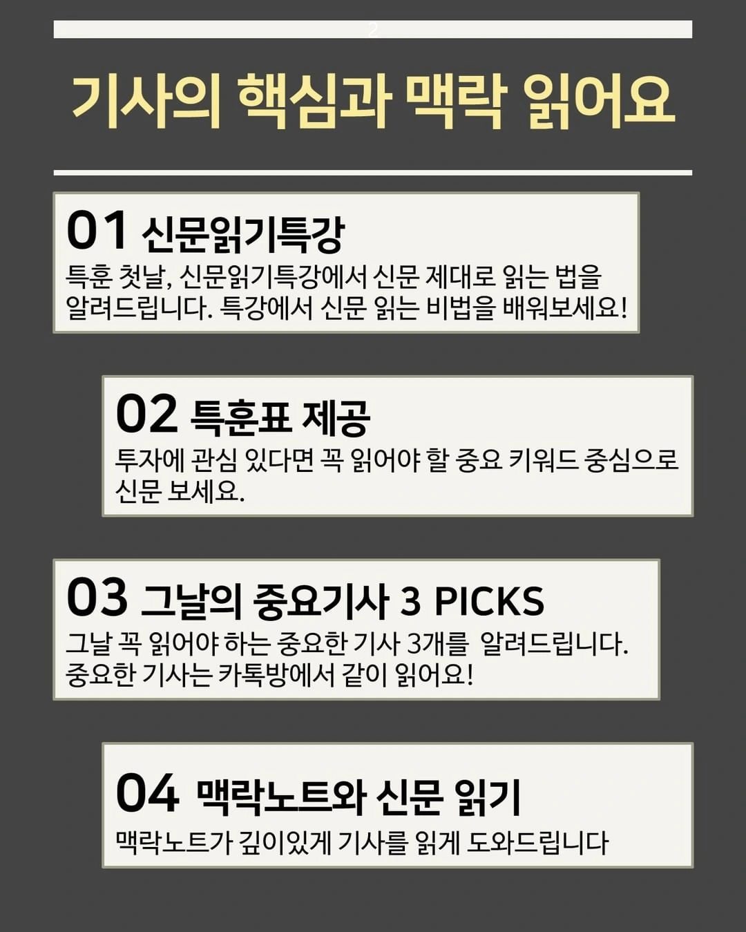 아직 기사에서 핵심과 맥락을 파악하기 힘드신 분들은 신문읽기특훈 시즌3과 함께 하세요!