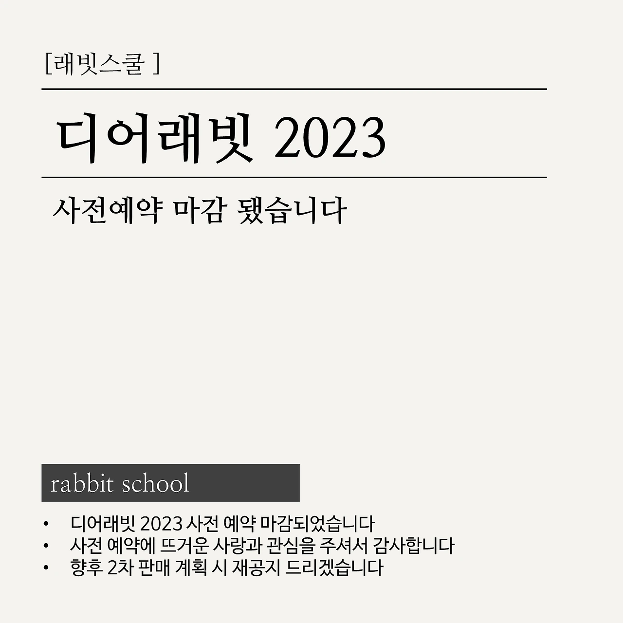 디어래빗 2023 사전예약이 여러분의 뜨거운 성원 덕분에 조기 마감됐습니다.