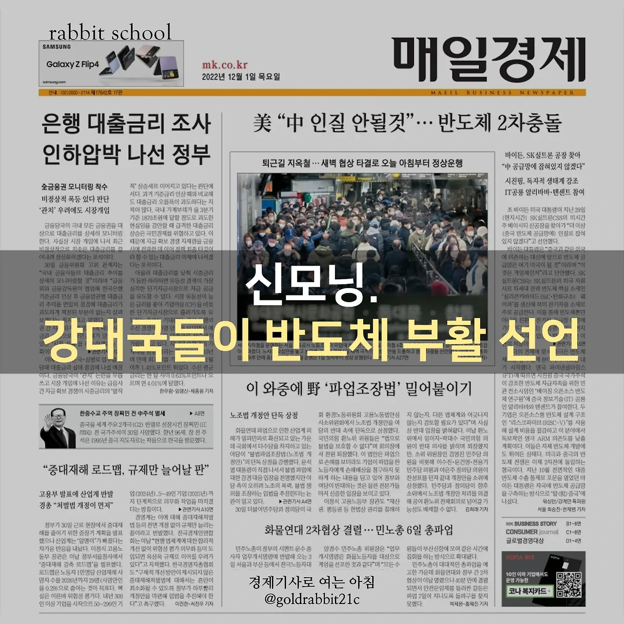 3. 바이든 대통령은 어디상 중국 반도체 공급망에 인질로 잡혀 있지 않겠다고 지난 29일 선언했다. 이처럼 확실한 발언이 나오는 것은 한· 미· 일· 대만 반도체 동맹을 공고히 하겠다는 속내를 보이는 것이다. 지금까지 전략적 모호성을 띄고 있던 외교적 입장에서 → 결국 중국과 미국 중에 선택의 시간이 다가오고 있음을알고 있다. 기업은 정부 차원에서 정리해주기를 바라고, 정부는 아직까지 외교적 결정을 못한 상황이다. 어느 나라든 정쟁이 없었겠는가. 가장 현명할 결정을 내릴 수 있기를 바라고, 국제 관계가 더 사악해지지 않길 바랄뿐이지. 다만 시간이 촉박하다는 게 문제.