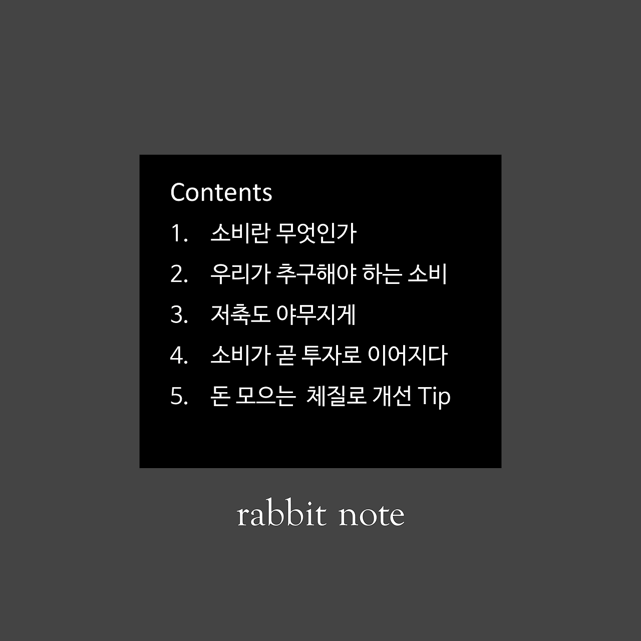 이번 주제는 '소비지출' 입니다. 물가 인상 속도만큼 월급은 오르지 못하고, 투자는 아직 망설여 진다면 통제할 수 있는 것부터 잡는 게 좋겠죠? 래빗스쿨만이 알려드리는 '지속가능한' 소비지출법은 모두 담았습니다. 지금까지 잘못된 소비습관을 가지셨다면 이번 리포트가 정말 도움이 많이 되실 거예요!