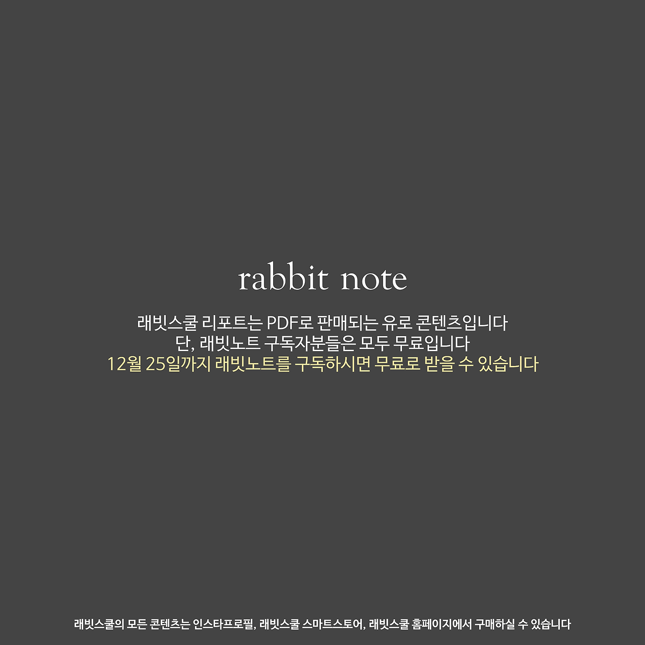 래빗노트 구독자는 모두 무료로 보내드립니다. 지금 래빗노트를 구독하셔도 리포트를 무료로 보실 수 있어요.