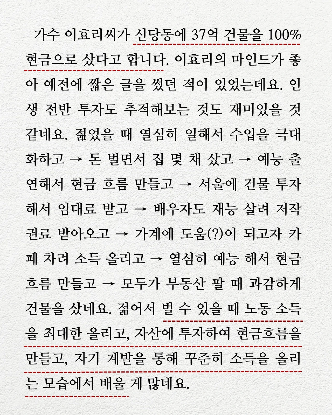 가수 이효리씨처럼 재테크하는 것도 좋겠어요.