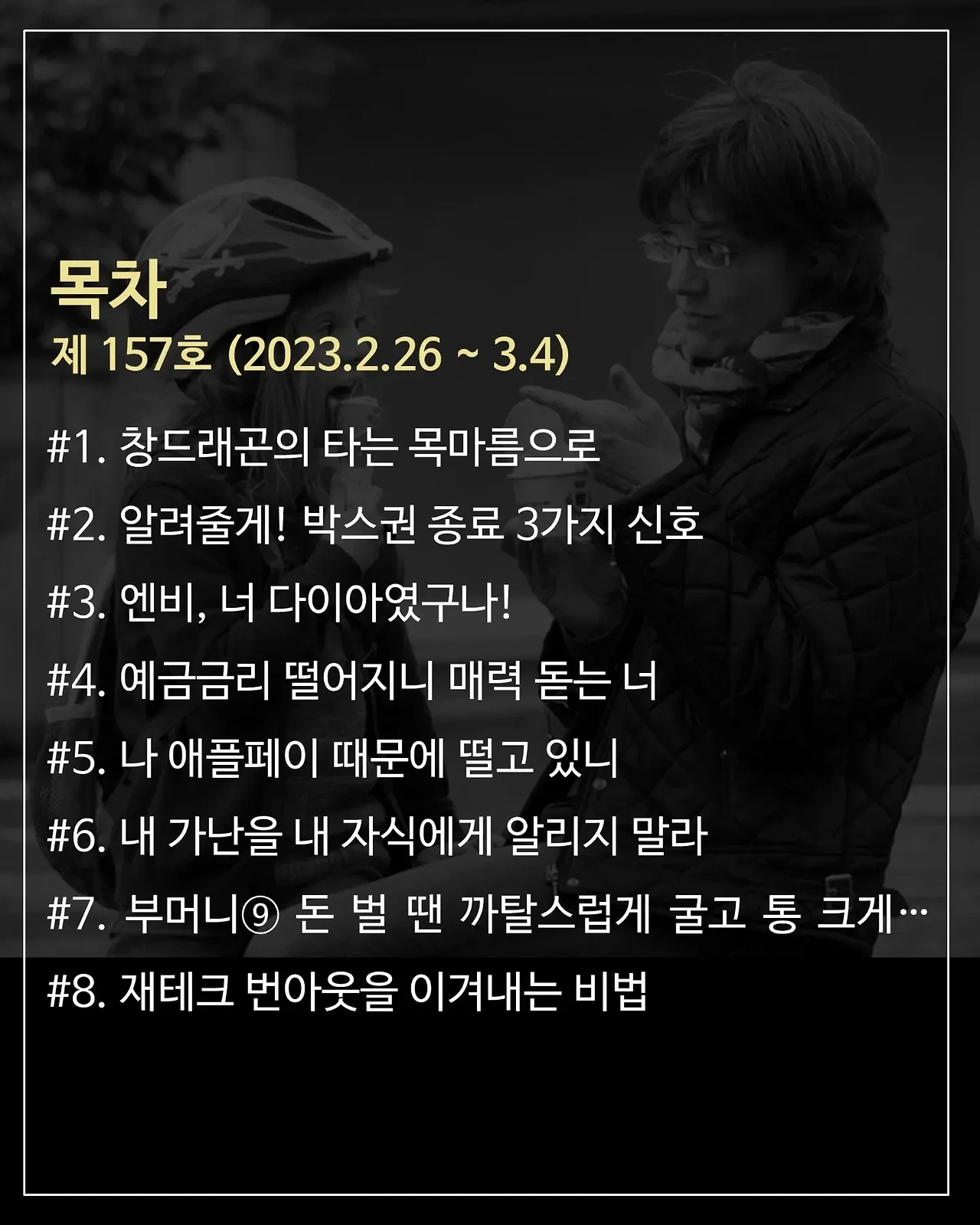 쌀쌀한 금밤입니다. 다들 무사히 집으로 돌아오셨는지요? 래빗노트 따끈따끈한 157호 목차를 공개합니다