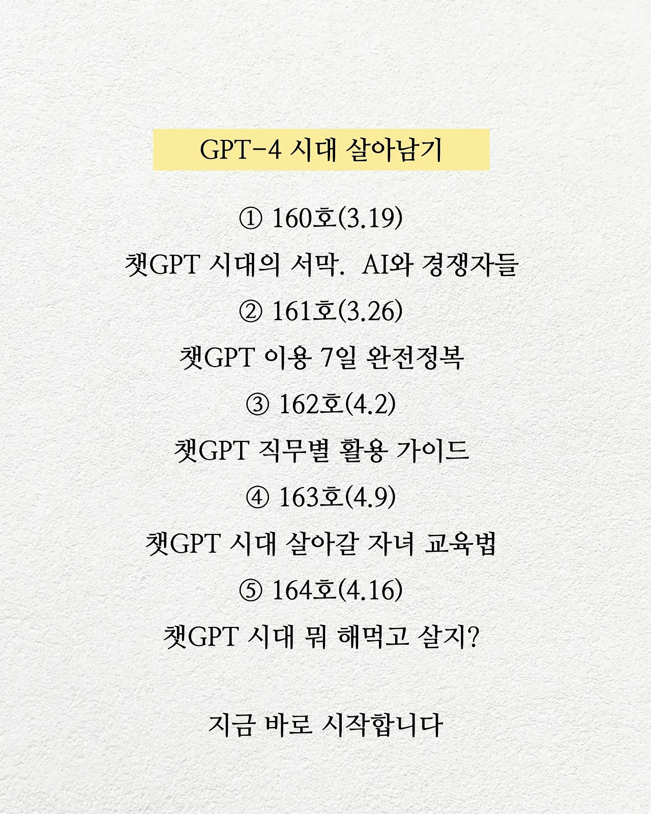이번 주부터 바로 시작할게요. 함께 읽다 보면 5주 뒤 챗GPT를 정복할 수 있을 거예요.