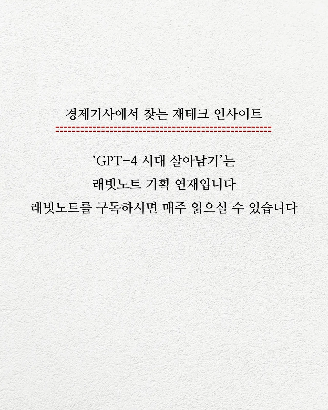 새로은 기술이 나타나서 어떻게 세상이 바뀔 지 불안하시죠? 물러서지 말고 실체를 파악하고 정복해야죠. GPT-4 시대에 살아남는 법을 래빗노트에서 연재합니다.