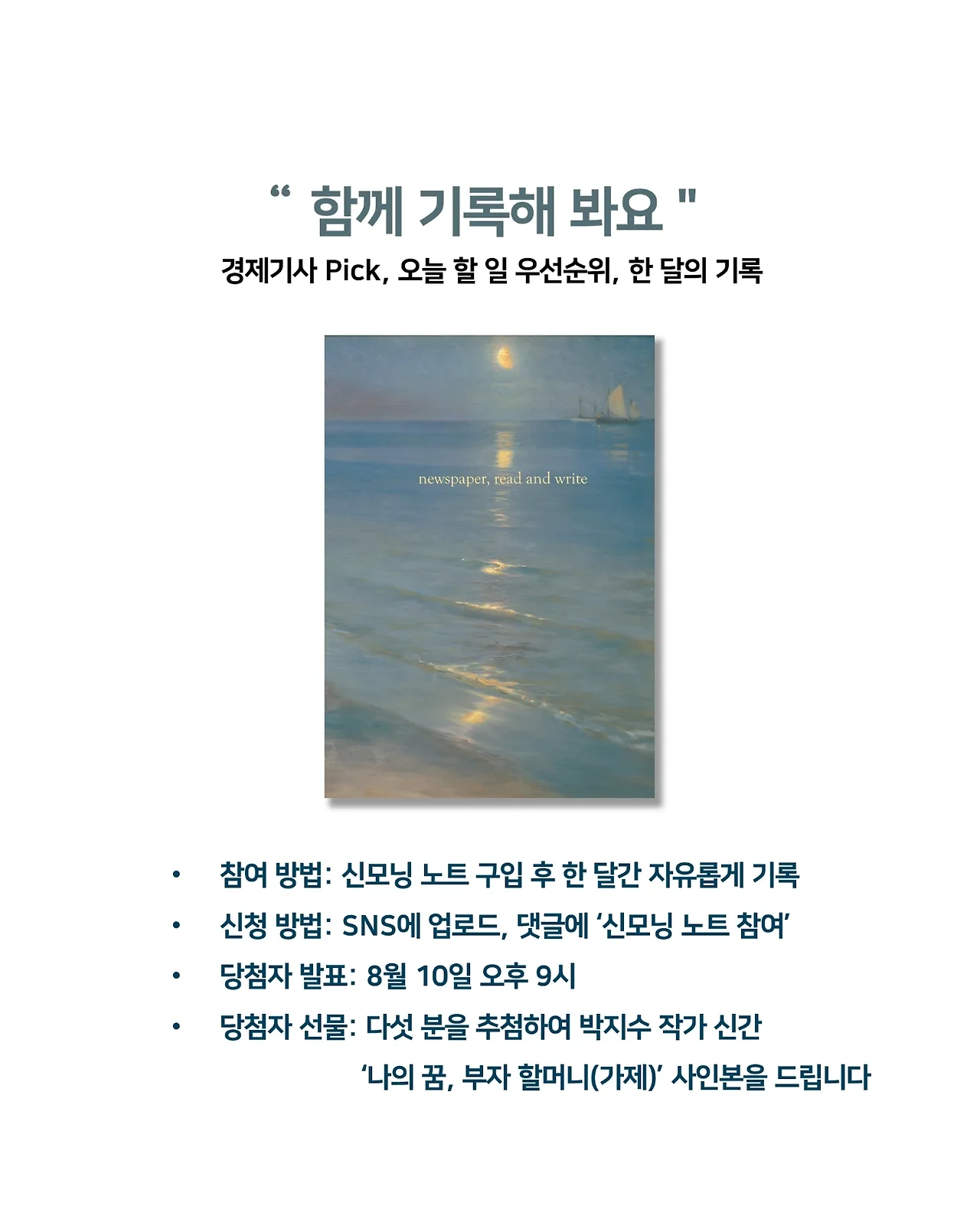 신청 방법: SNS에 업로드. 여기에 댓글로 '신모닝 노트 참여'. 태그는