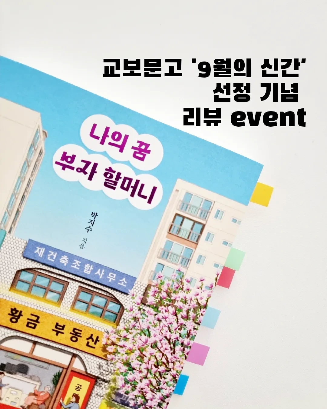 오늘 좋은 소식이 있어요! 부자 할머니 책이 교보문고 이달의 신간(9월)에 선정되어 9월 1일부터 교보문고 전지점 특설평대에 한 달간 놓인다 해요.