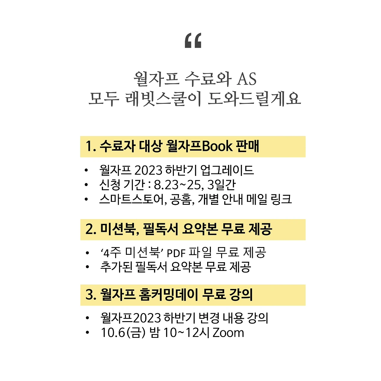 이번에도 월자프 기존 수료자분들께는 3가지 AS를 준비했어요.