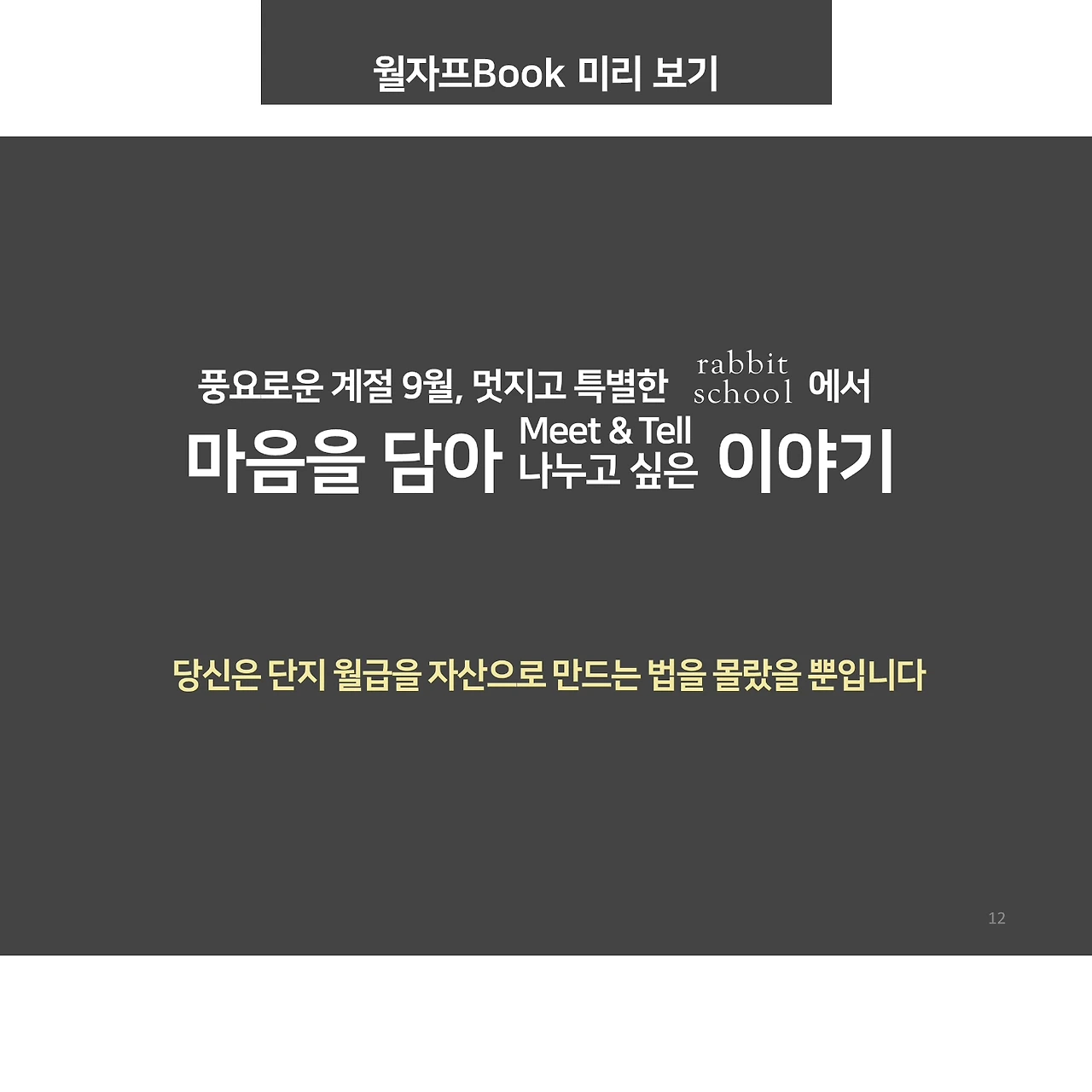 비가 억수같이 쏟아지는 수욜 오후입니다. 저희 래빗스쿨팀은 월자프 준비로 바쁜 날들을 보내고 있어요. 특히 월자프북은 내용 업그레이드가 많아서 수정하고 검증하는 작업에 시간이 많이 걸리고 있답니다.