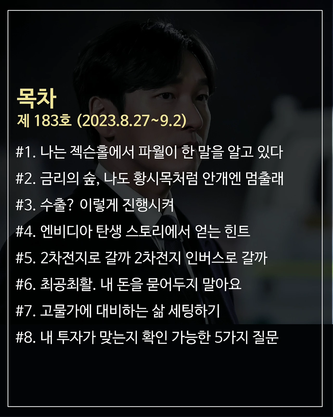 7. 지난주 고금리, 고물가 시대에 입장하는 마음가짐 잘 잡으셨나요? 183호에서는 좀 더 실생활과 접목하여 래빗님들의 삶을 세팅해 드릴 거예요. 남들보다 먼저 준비하고 먼저 안정을 찾자고요.