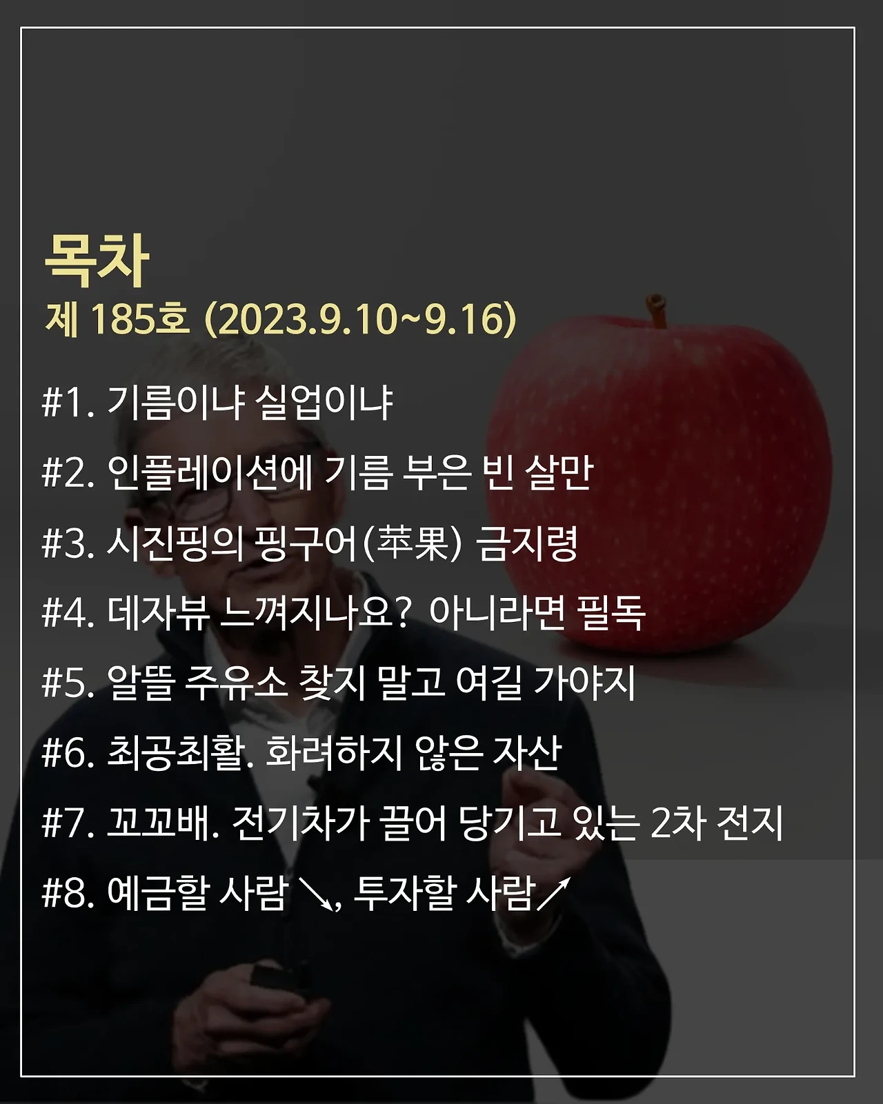 이번주 래빗노트 185호에서도 흘러가는 경제에서 꽉 붙잡아야 할 것은 챙기고, 전화점 맞이한 것들은 콕 찍어서 알려드릴 거예요. 목차 일부 먼저 설명드릴게요.