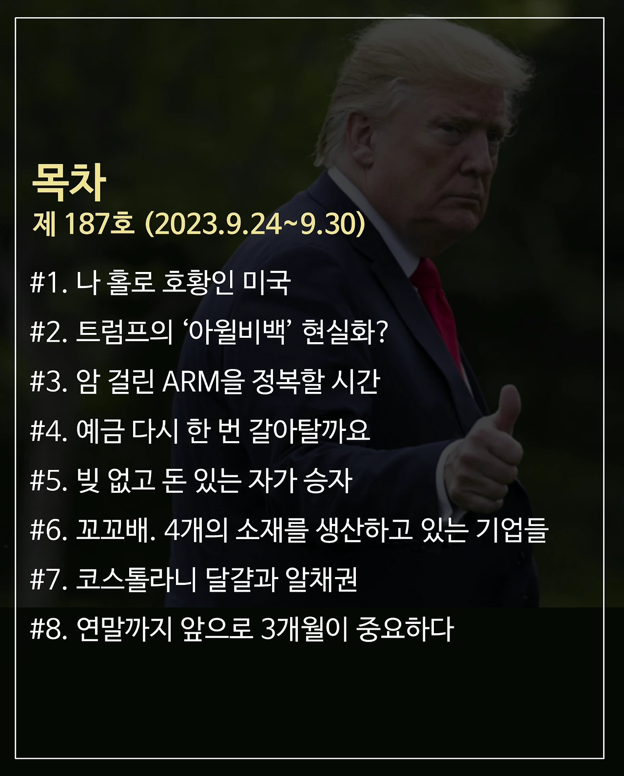 8. 연말까지 3개월이 중요하죠. 지난해는 돈 모으고 딱 갖고 있으라 말씀드렸는데요. 이번에는 뭐라고 말씀드릴까요? 래빗노트팀은 이렇게 187호를 준비하고 있습니다.