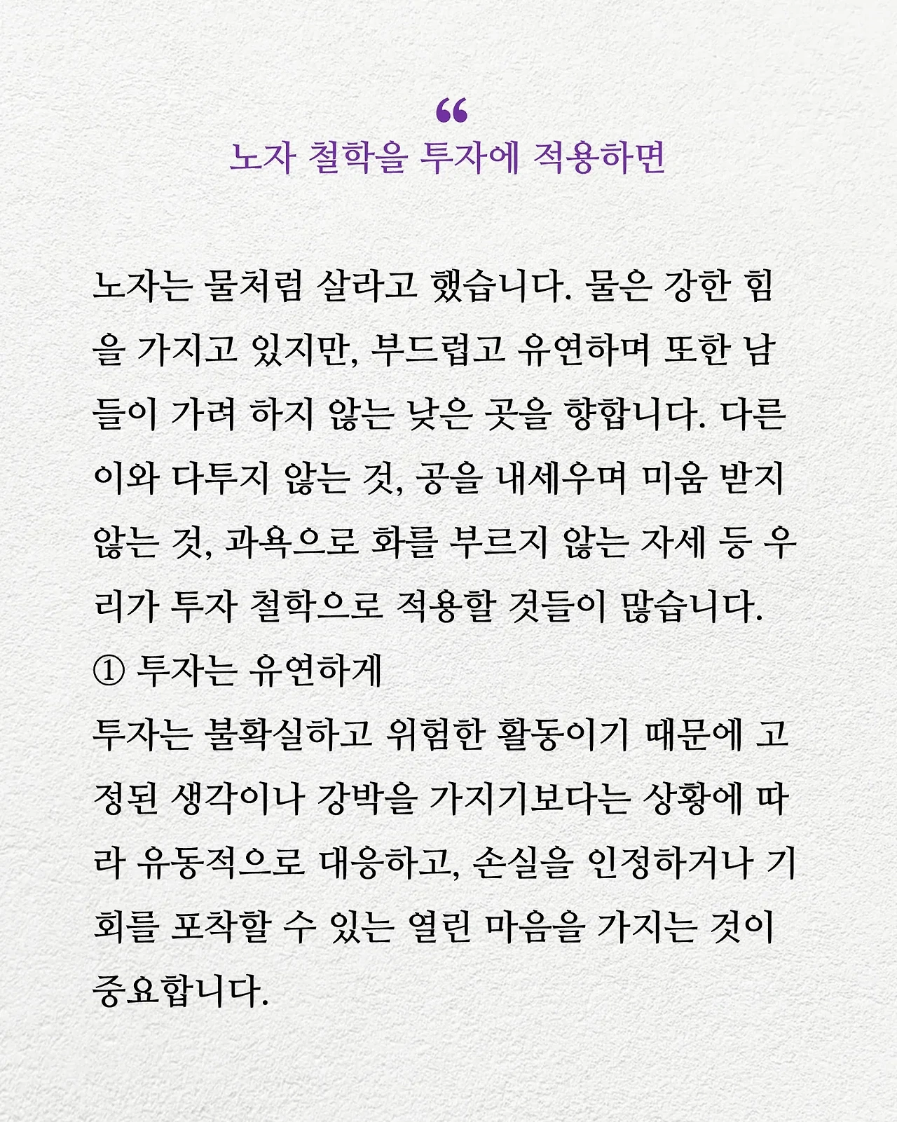 래빗노트 시리즈 <래빗 필로소피> 두 번째 이야기는 중국의 사상가 '노자'였습니다. 바쁜 생활 속에 답을 찾고 있지 못하다면 래빗노트와 함께 하세요. 함께 시대의 흐름 속에서 순리에 따르는 투자의 지혜를 알려드릴게요~