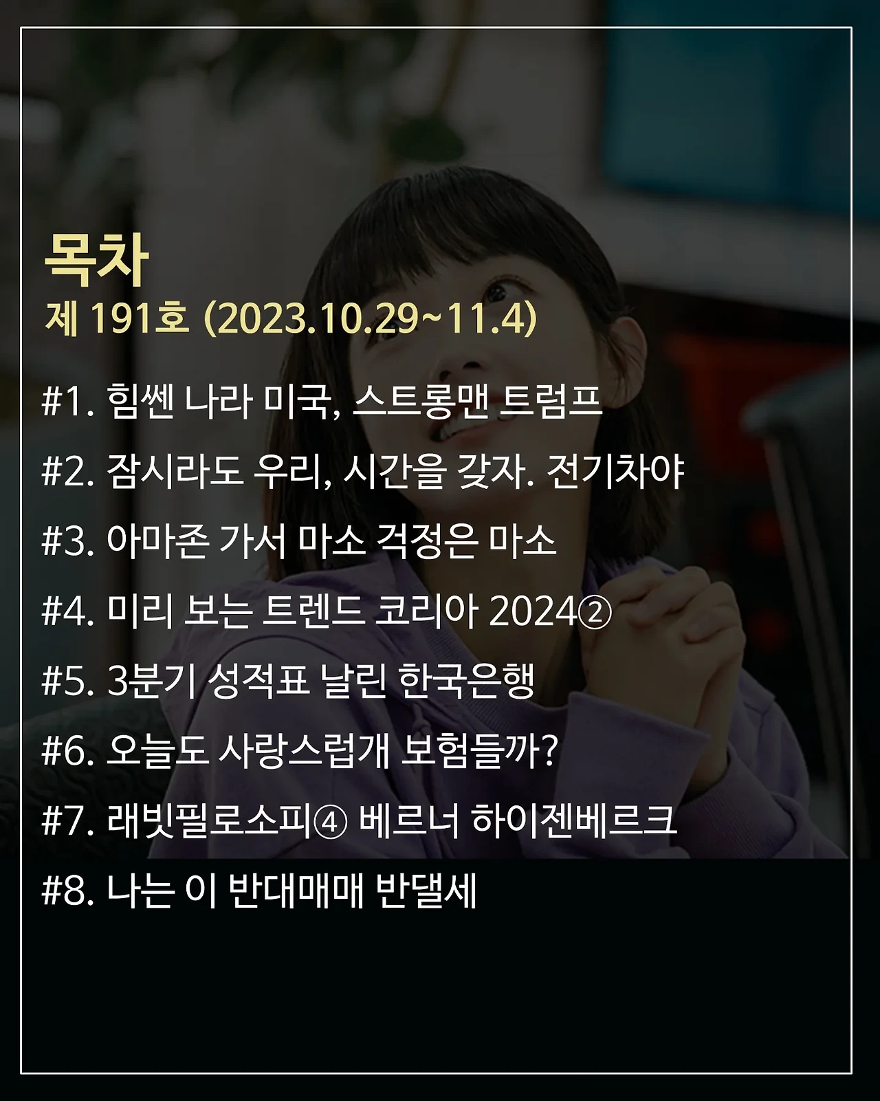 4. 트렌드 코리아2024는 4회 시리즈로 분석하고 있는 중입니다. 라이프스타일을 알아야 하죠. 경제는 너무 빠르게 바뀌어서 1년치를 한 번에 예상하는 게 크게 의미가 없으니까요.