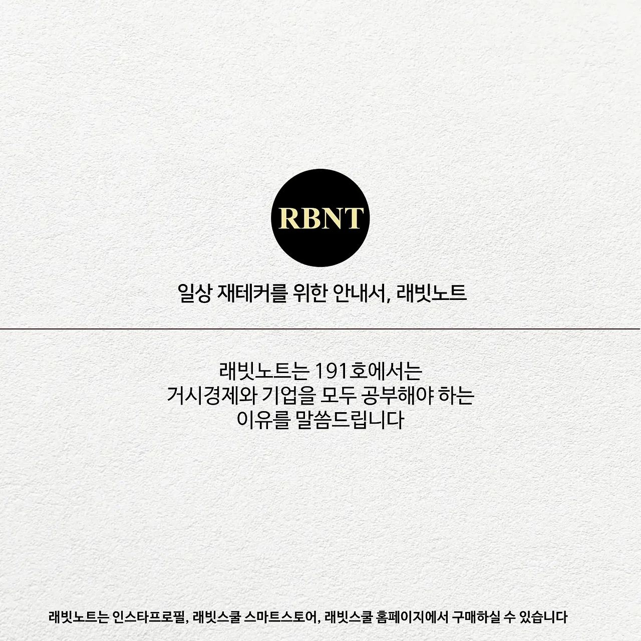 오늘밤 래빗노트 191호 잊지 않으셨죠? 경제가 버라이어티해도 중심만 잘 잡고 꾸준히 내 갈 길을 가면 되는 거죠. 래빗노트가 도와드릴게요.