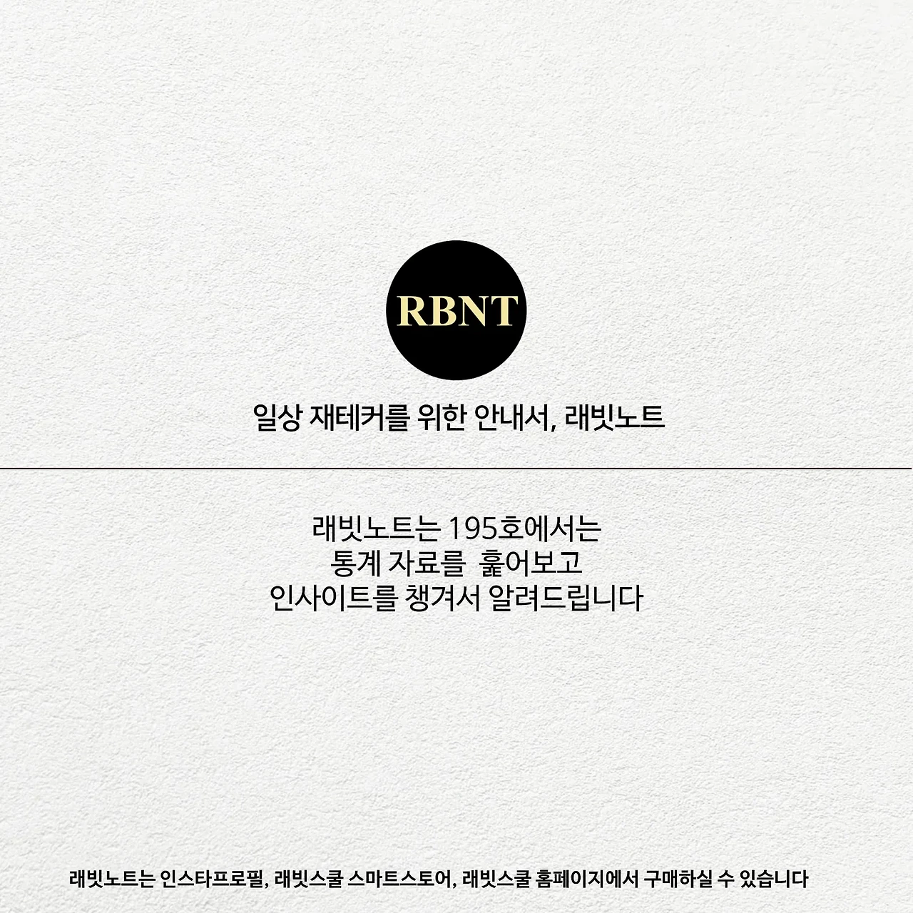 숫자 많다고 늘 패스하는 통계료도 래빗노트에서 읽으면 재미있죠. 중요한 숫자만 뽑아서 인사이트를 전달하니 그런 거 아닐까요? 더 힘을 내어 살아야 할 이유를 이번 195호에서 찾으시면 좋겠어요!