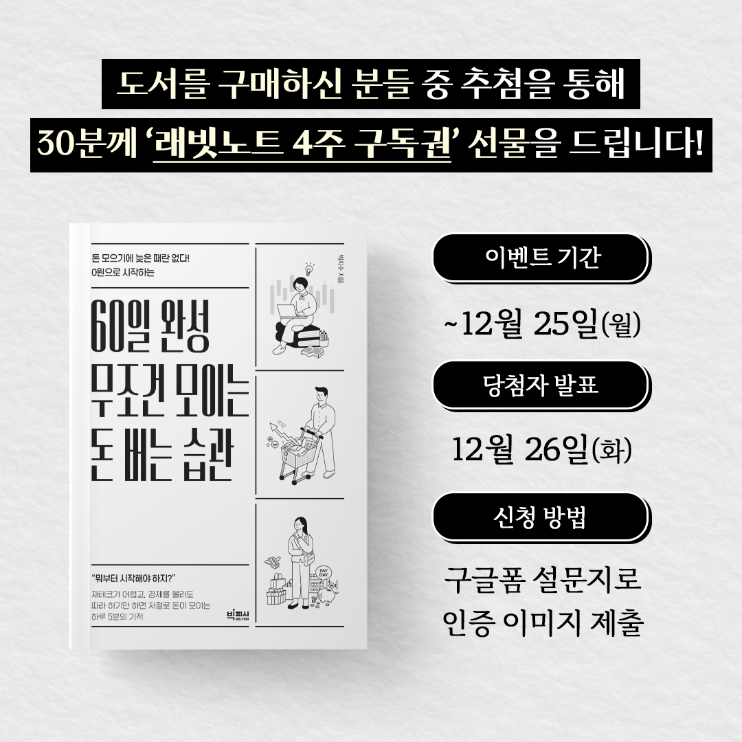 - 참여 방법: 온&오프라인 서점에서 도서 구매 후, 구글폼 링크를 통해 구매 영수증 인증샷 제출