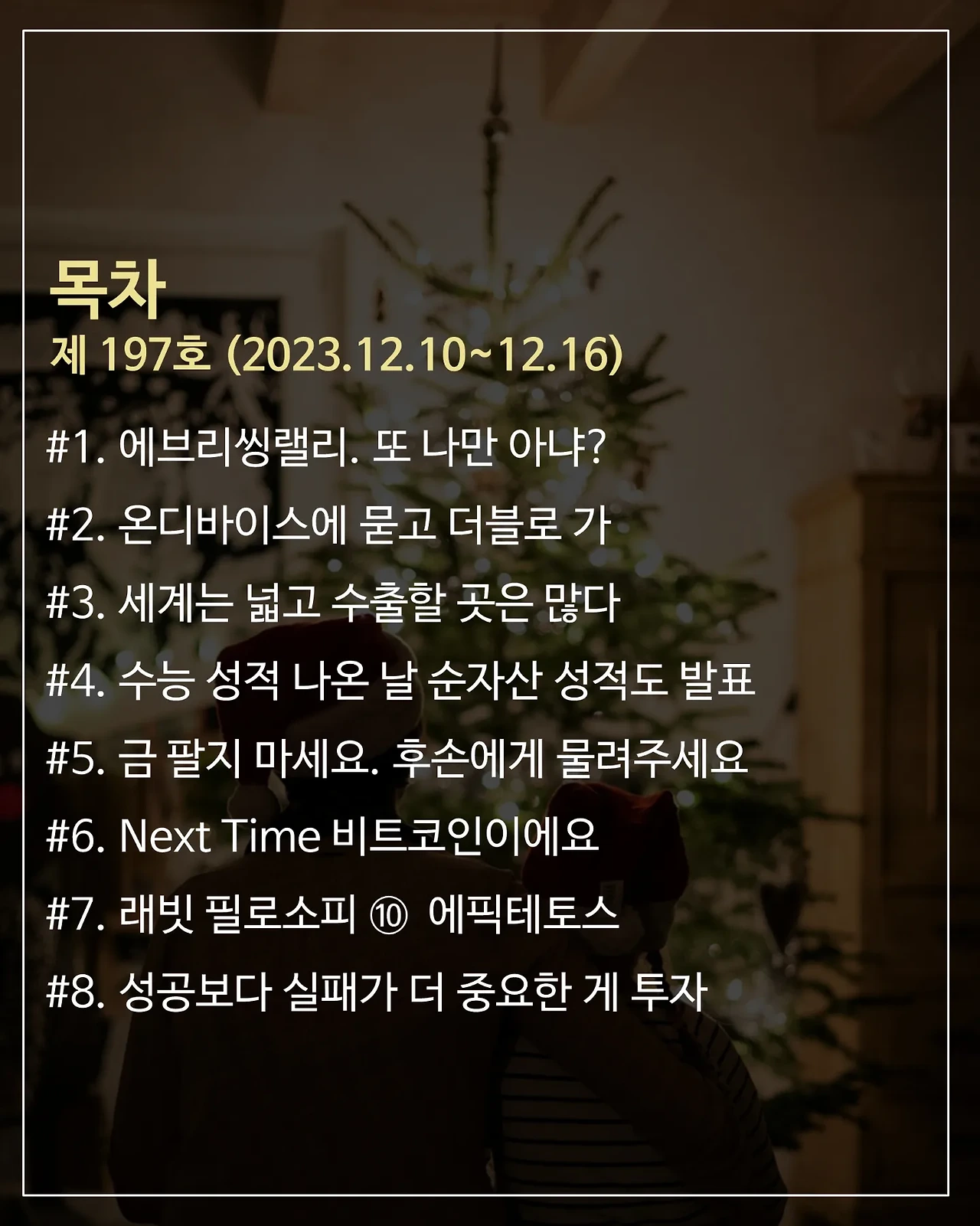 이번 주 일요일 밤 9시 발행할 197호 목차 먼저 살펴보겠습니다.